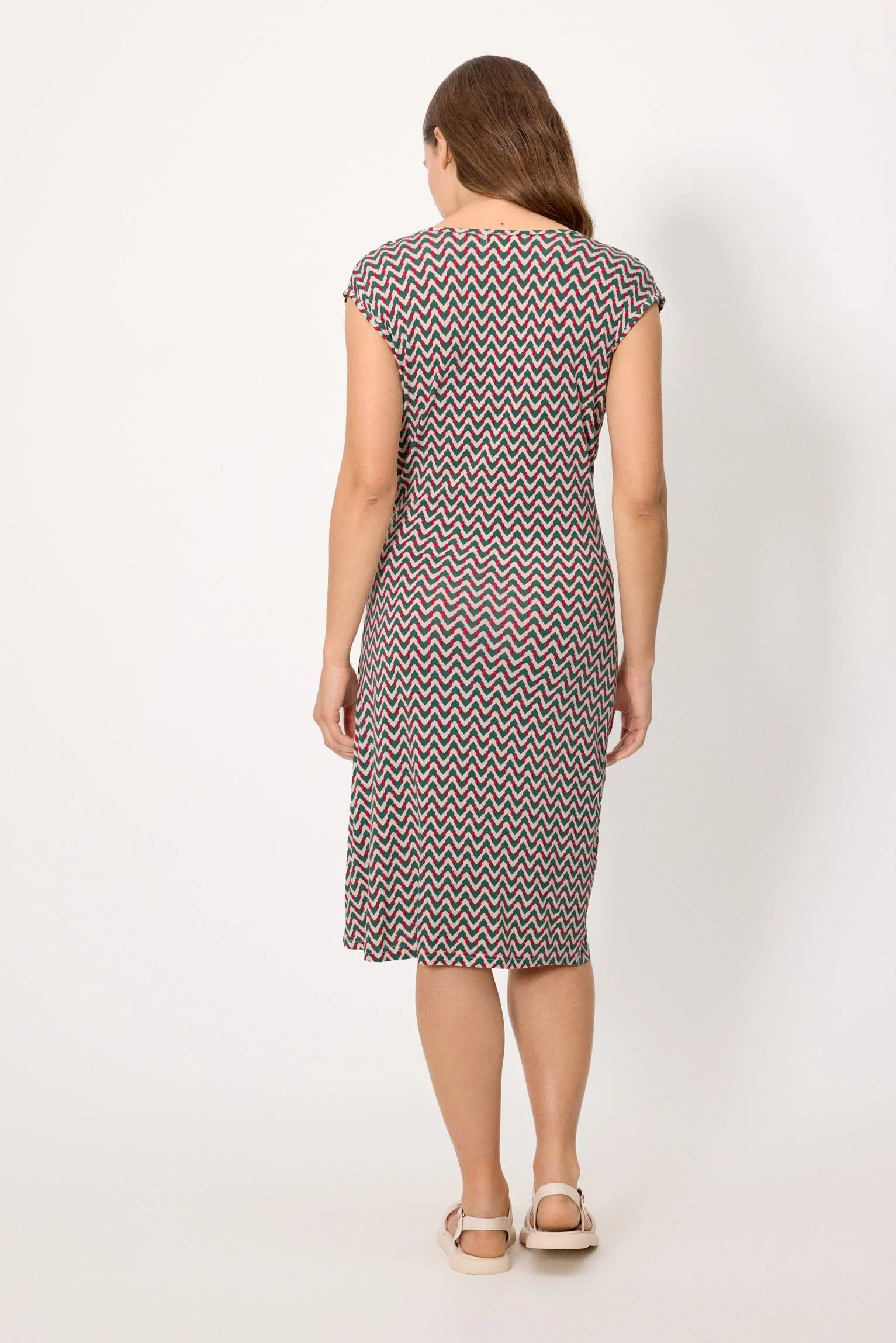 Abito estivo corto, lunghezza al ginocchio. Realizzato in un tessuto fresco e leggero. Questo abito unisce la naturale morbidezza del cotone all’elasticità necessaria per una vestibilità perfetta. Un modello versatile per un look da spiaggia e da piscina.