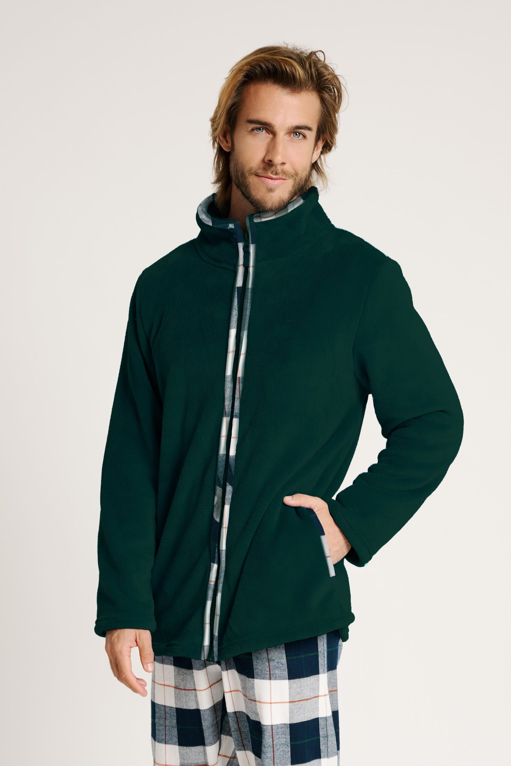 Questa vestaglia da uomo in pile è la scelta perfetta per chi cerca un comfort senza complicazioni. Realizzata in morbido pile, offre calore e leggerezza in egual misura. Il suo design pratico include una chiusura con zip, un collo alto e tasche laterali, ideali per tenere le mani al caldo o riporre piccoli oggetti.