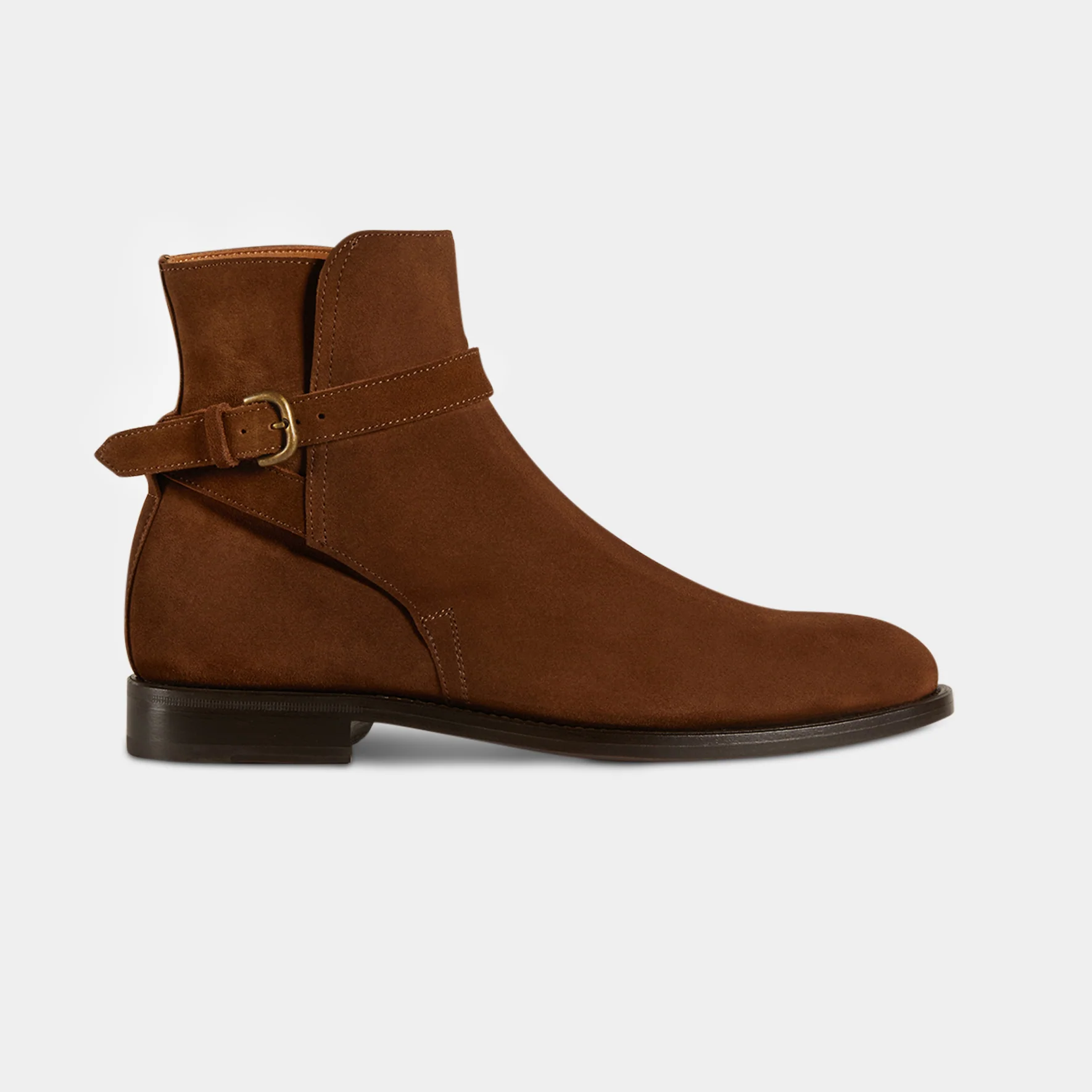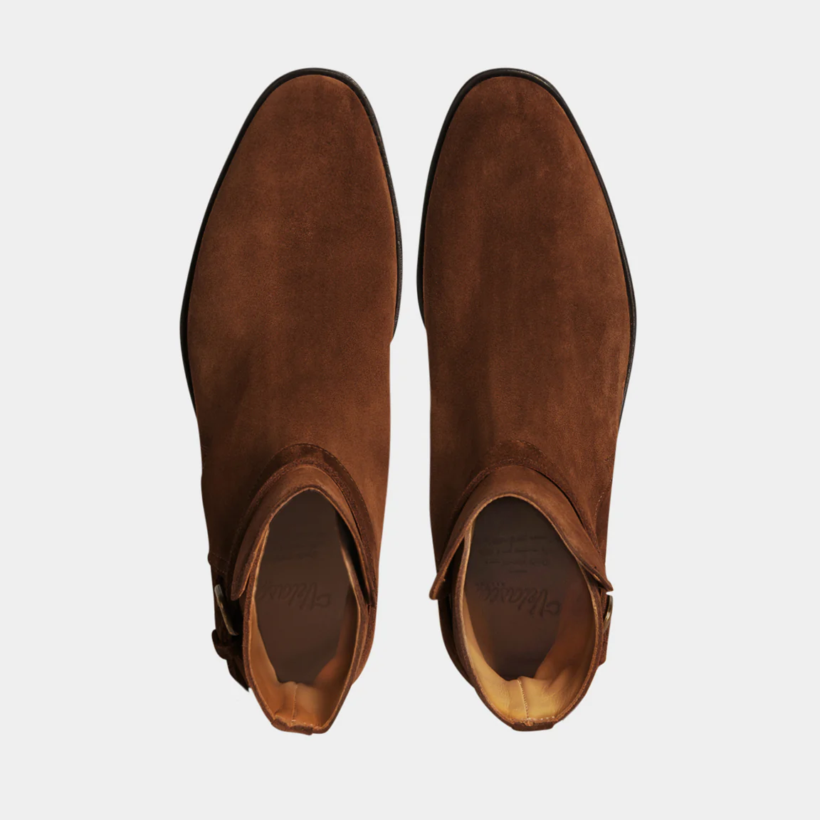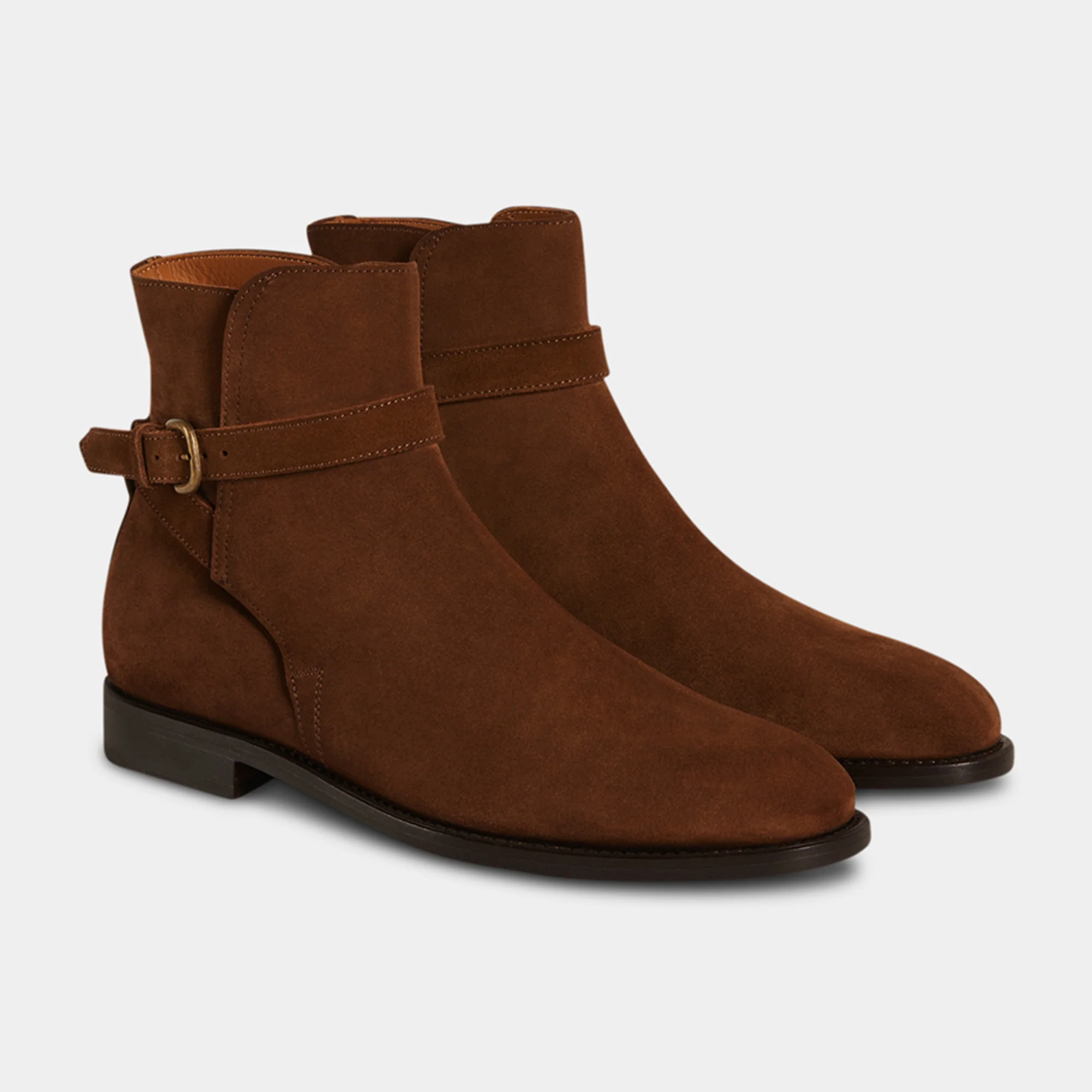 Sono gli stivaletti con fibbia dalle linee semplici ma eleganti, fatti a mano in Italia. La pelle di vitello scamosciata li rende ancora più flessibili, mentre l’accostamento tra gomma e cuoio nella suola garantisce maggior comfort a ogni passo. Noi li abbiamo abbinati a una giacca in camoscio, a una maglia a coste e un jeans.