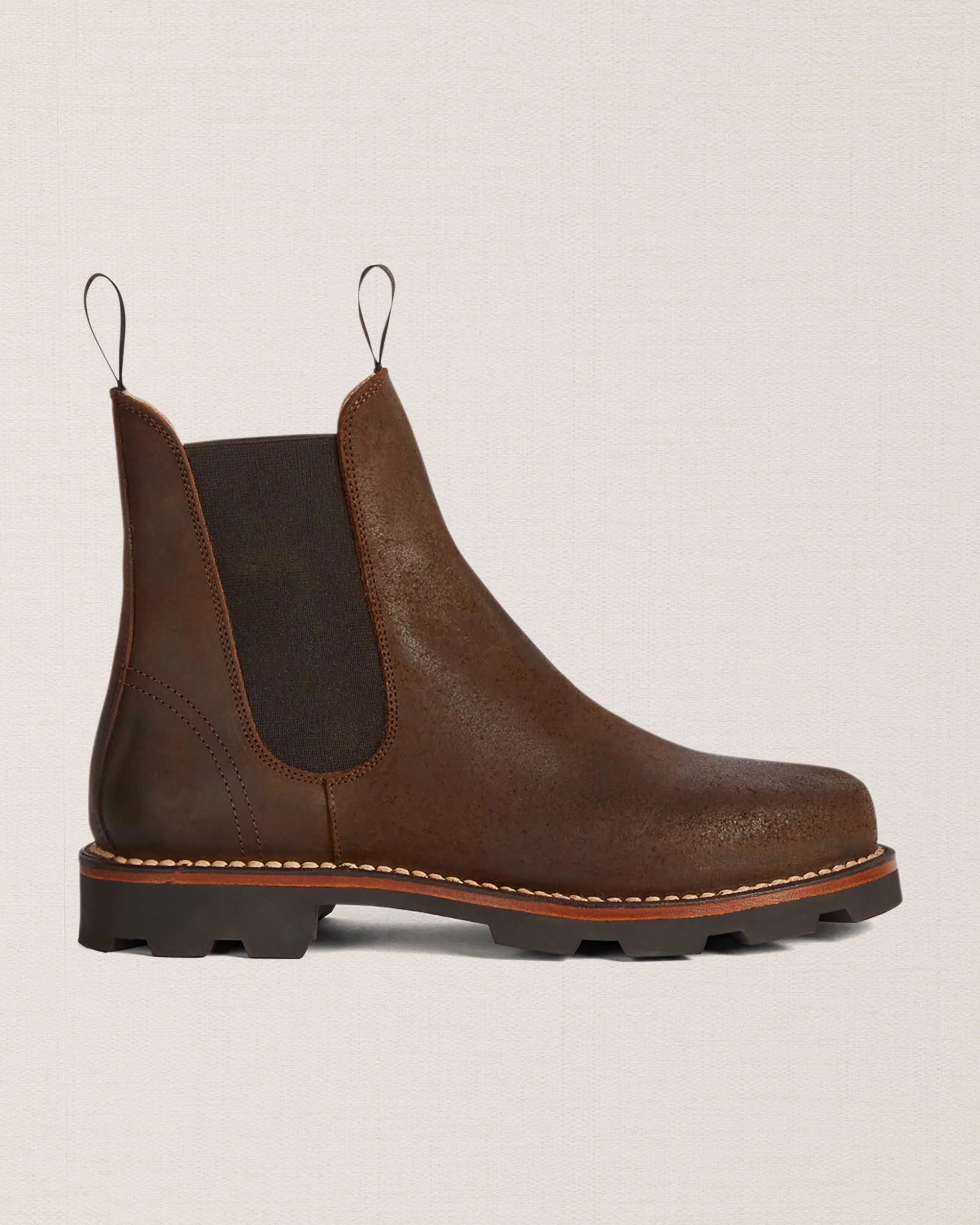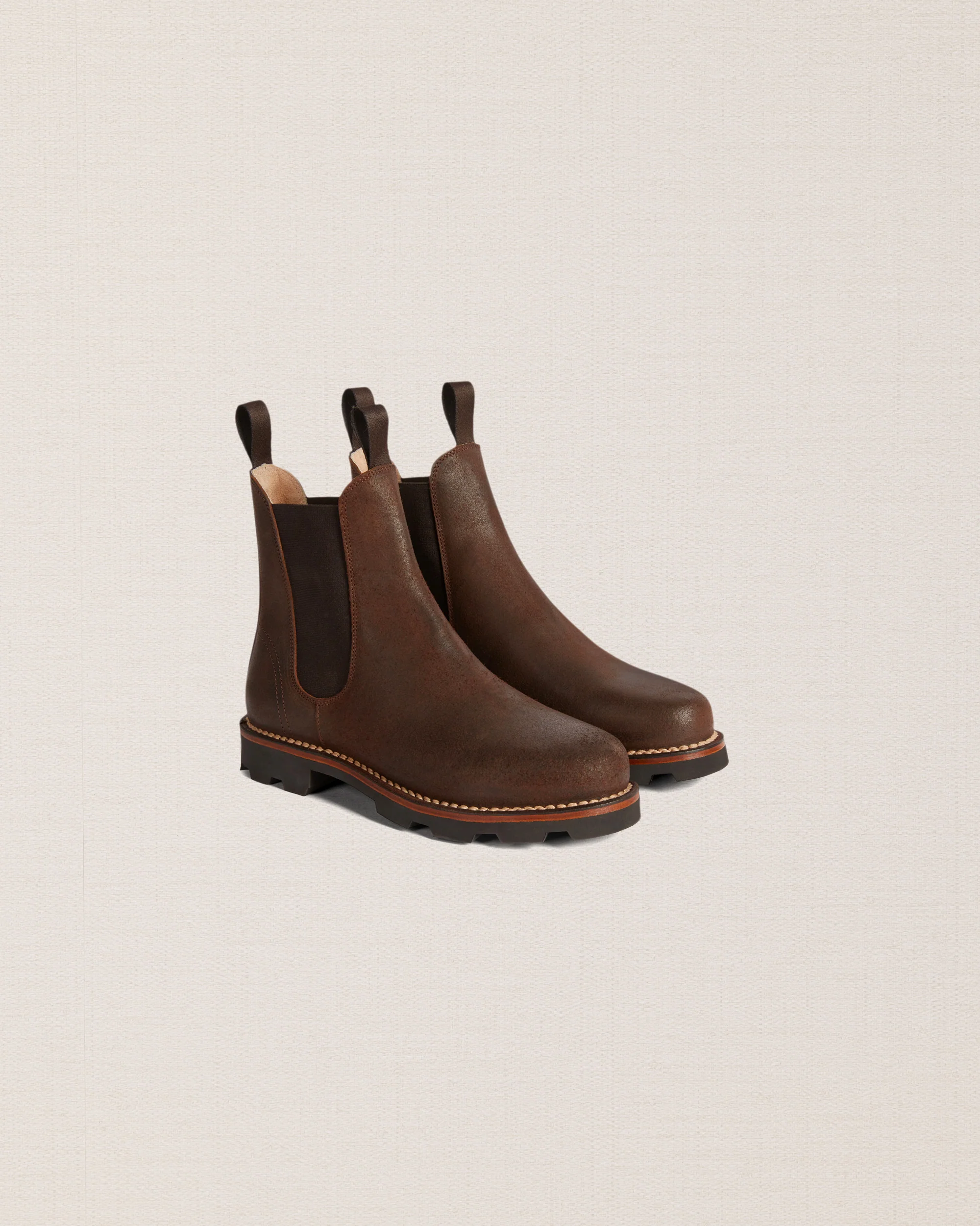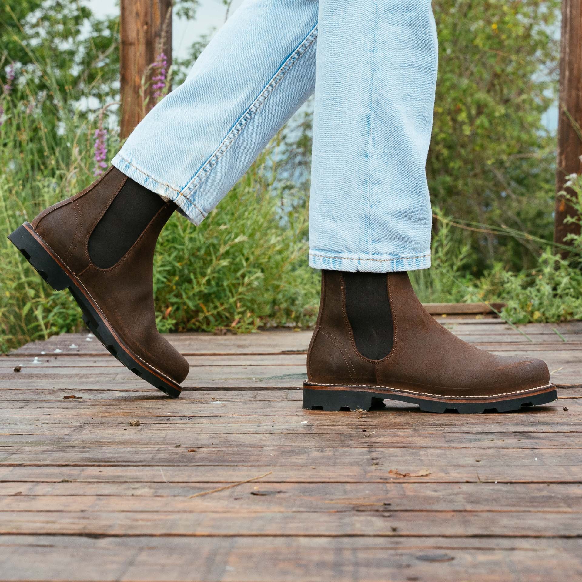 Il nostro stivaletto Chelsea con la suola in gomma Vibram Carrarmato, che ti assicura una perfetta tenuta su diversi terreni. Per vivere l’aria aperta. Fatto a Montegranaro (FM).