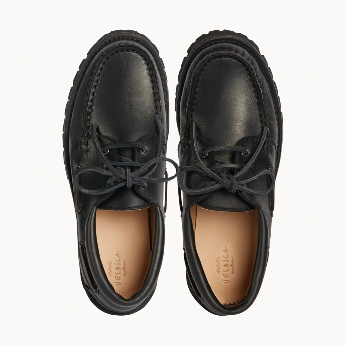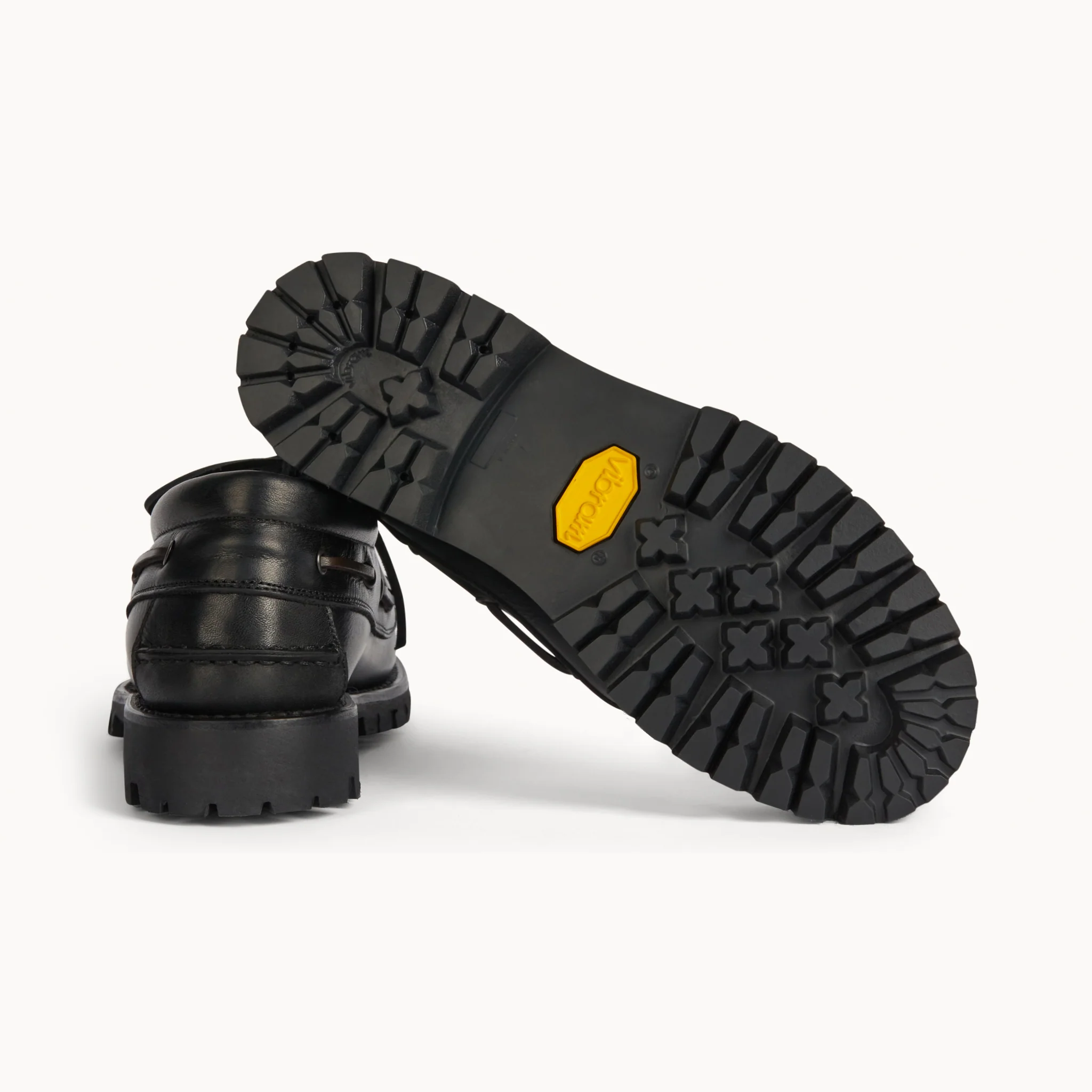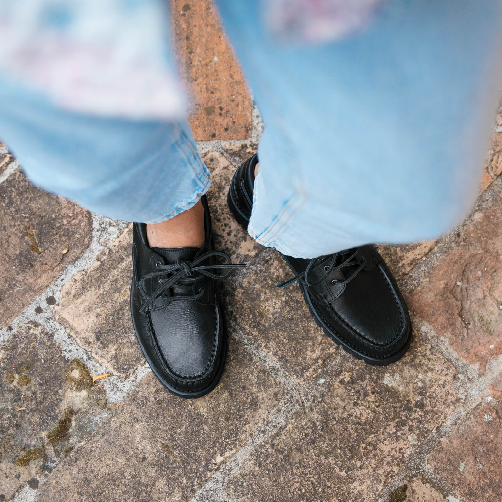 Non la solita barca dei ricordi estivi: questa versione con la suola in gomma Vibram Carrarmato è adatta all’autunno e all’inverno. Fatta a Montegranaro (FM).