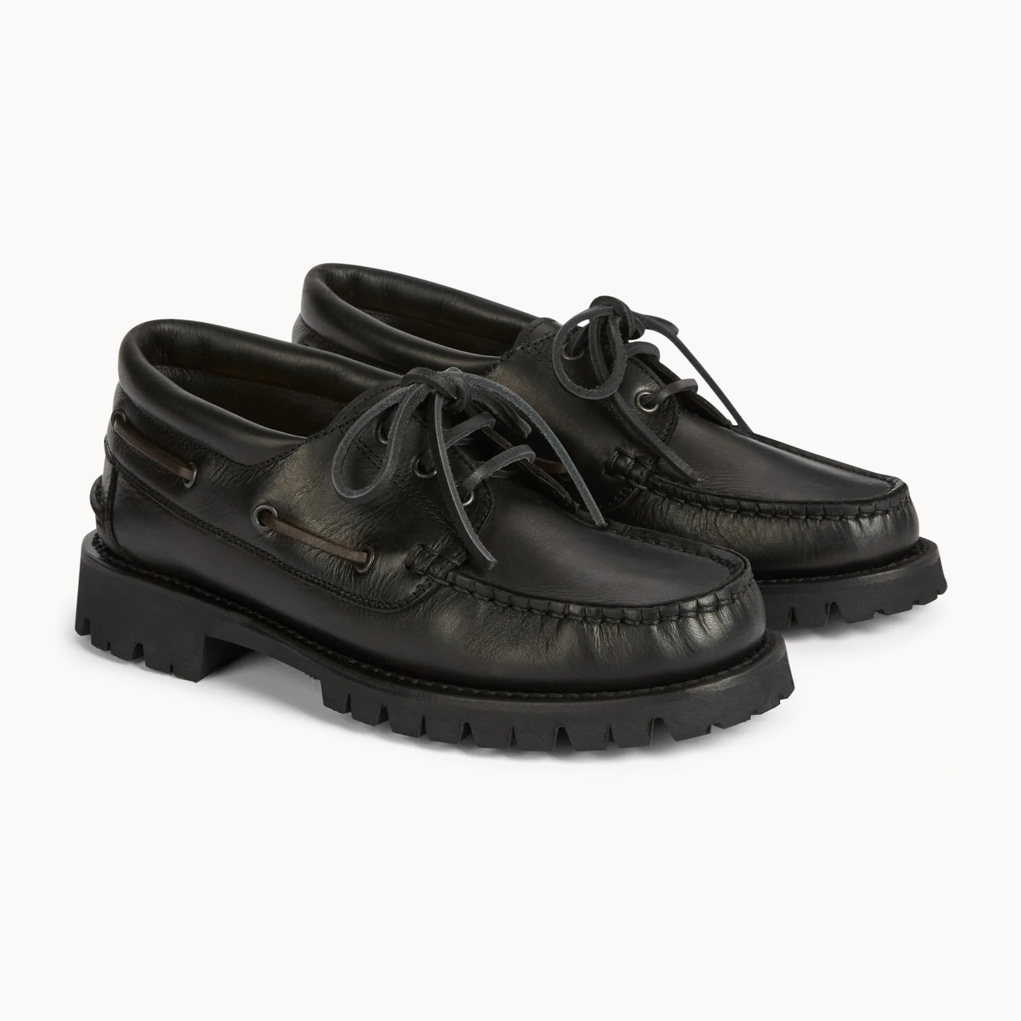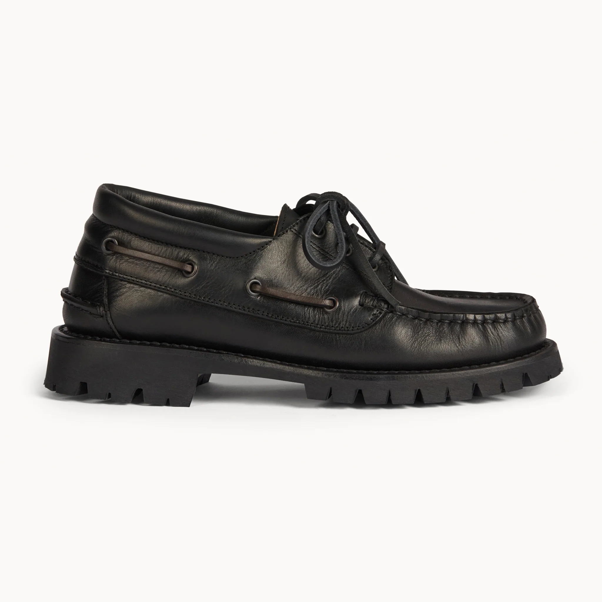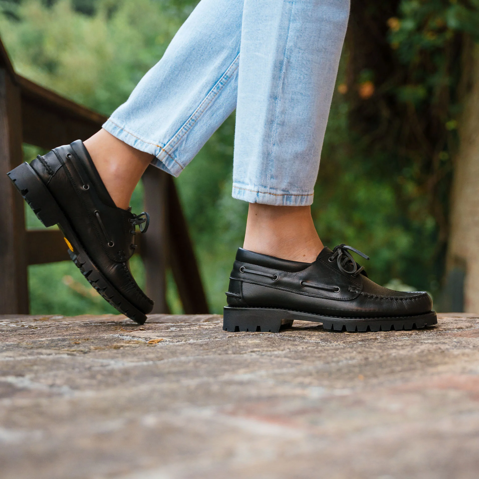 Non la solita barca dei ricordi estivi: questa versione con la suola in gomma Vibram Carrarmato è adatta all’autunno e all’inverno. Fatta a Montegranaro (FM).