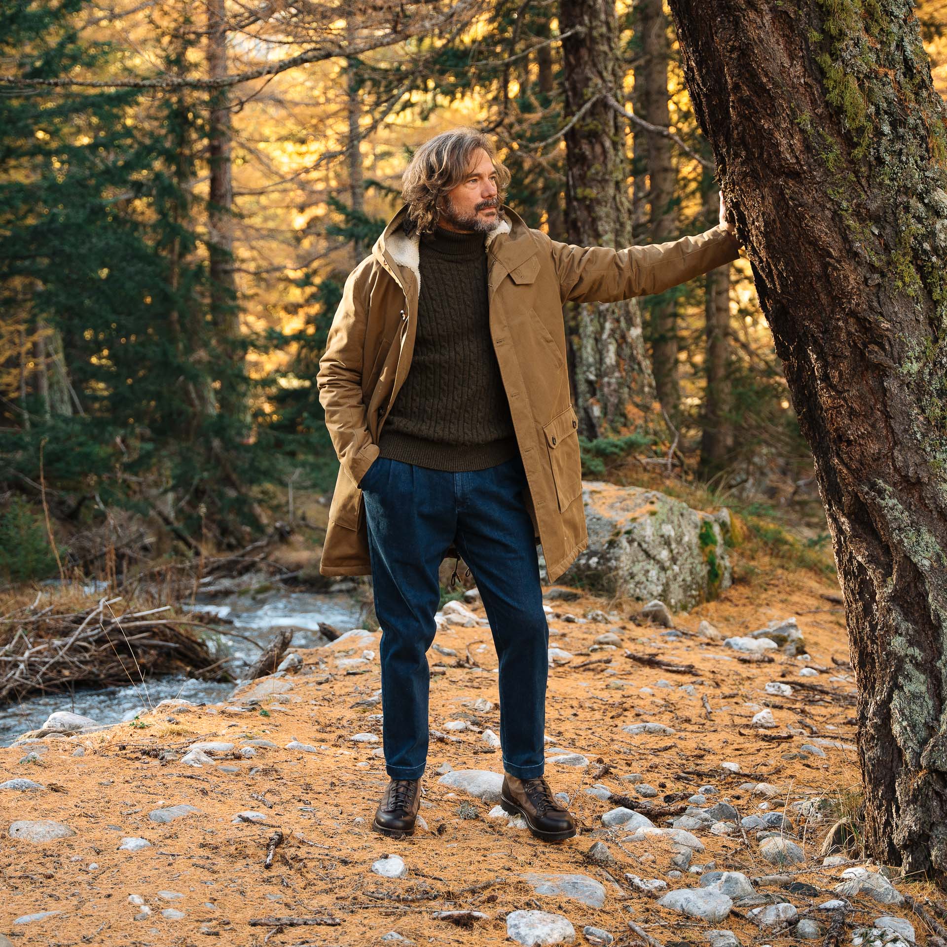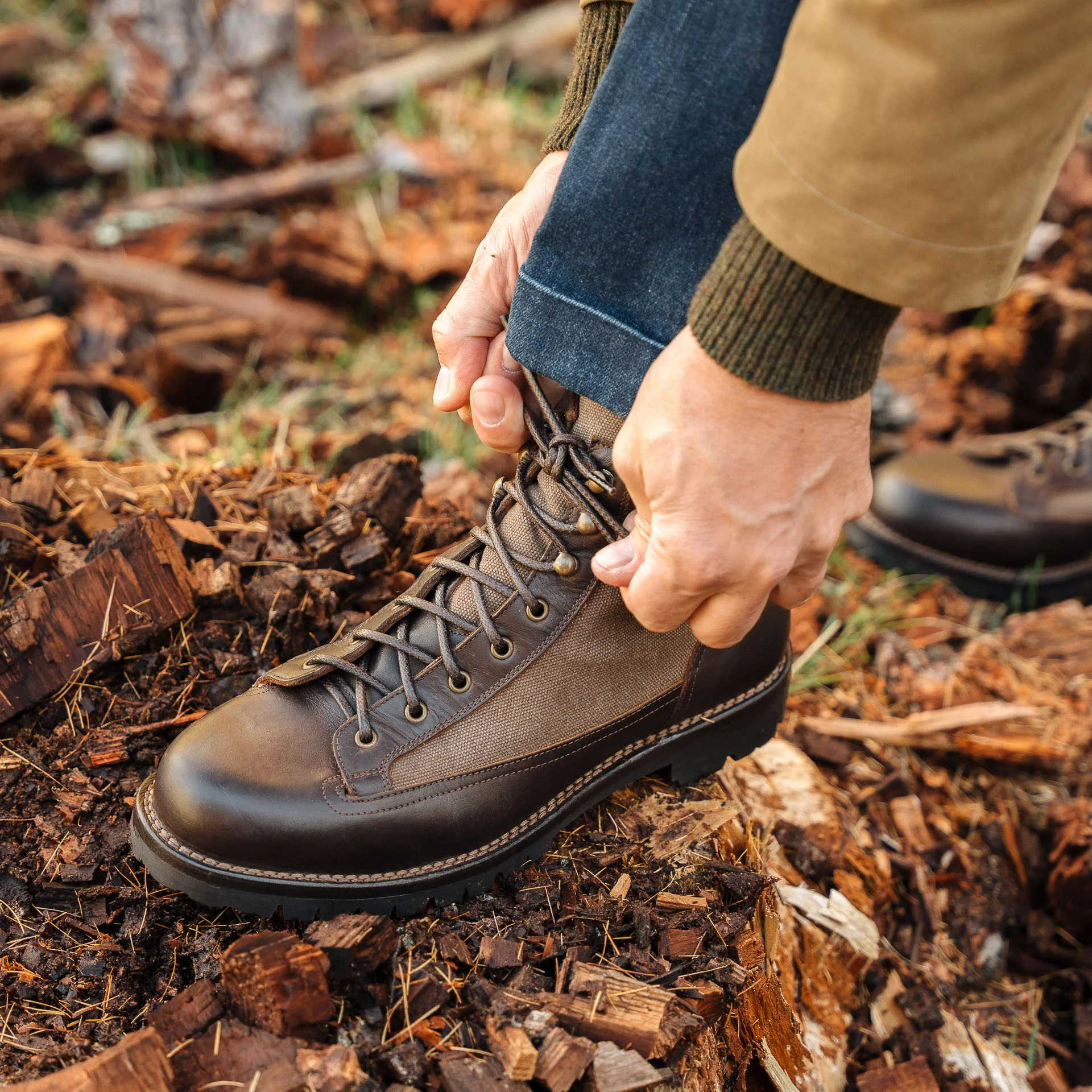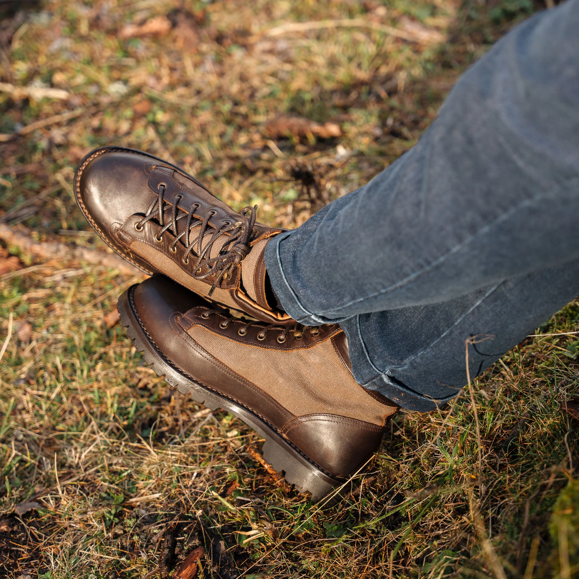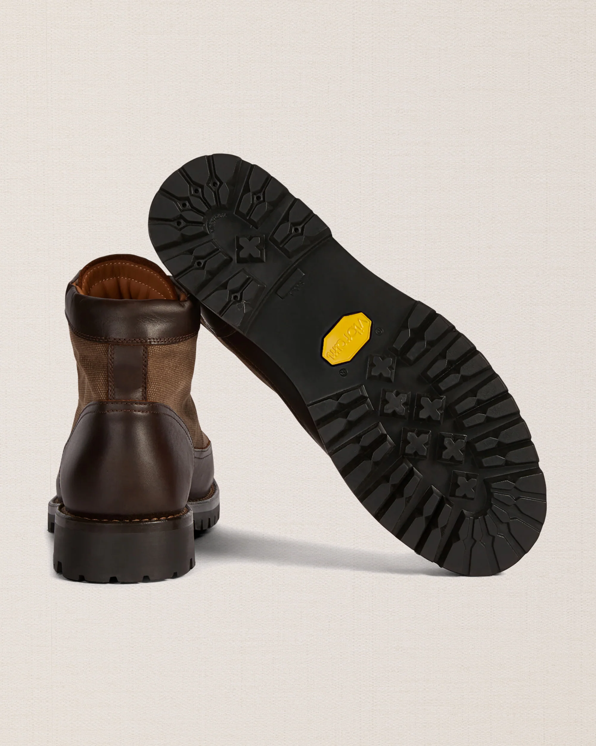 Le pedule dal tocco vintage in pelle liscia testa di moro e inserti in canvas marrone. Ispirate alle lunghe passeggiate tra i sentieri di montagna, hanno i lacci in corda e la suola in gomma carrarmato Vibram, che resiste all’usura e si adatta a tutti i terreni.