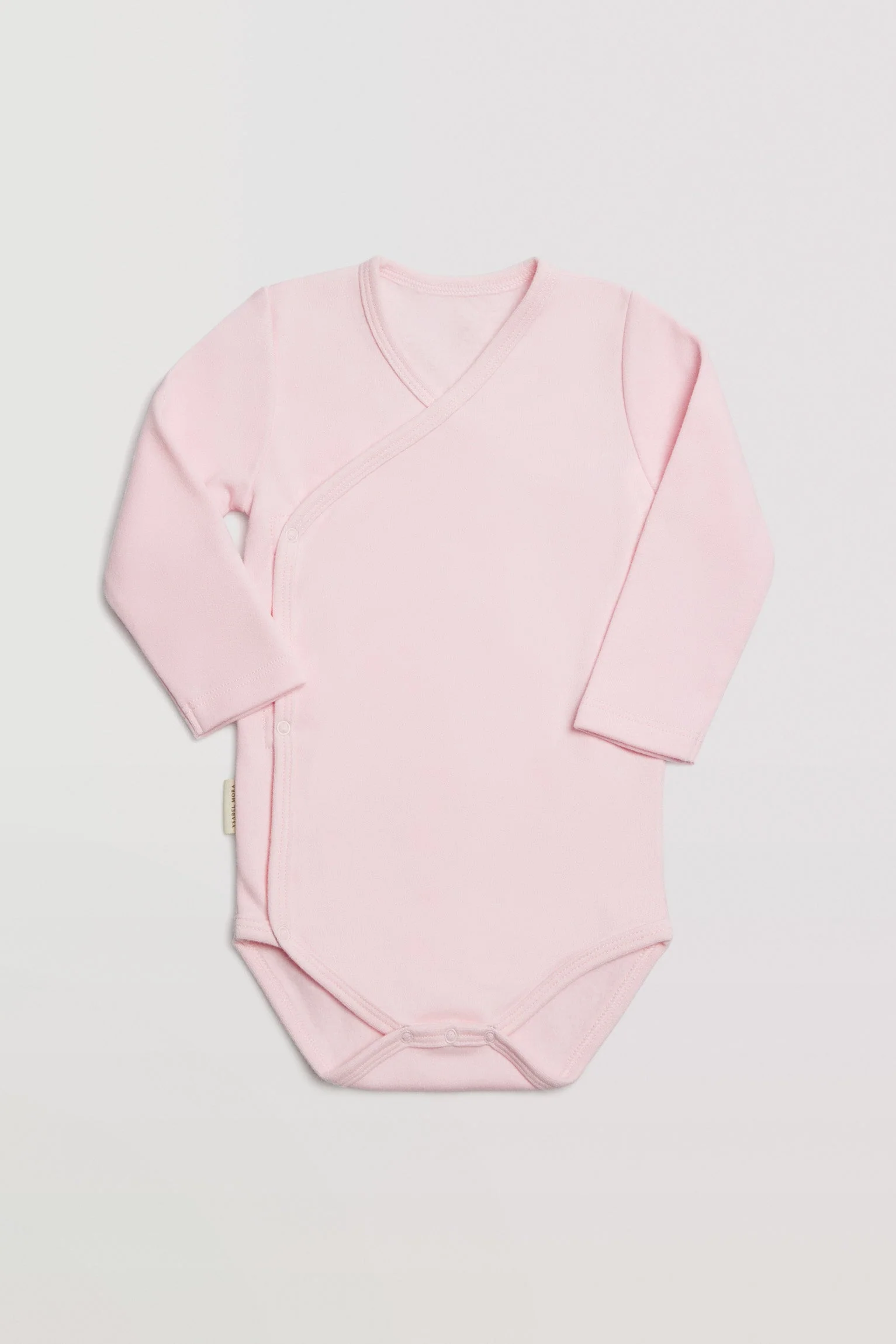 Body per neonati a maniche lunghe con cotone naturale. Modello incrociato, con scollo a V. Capo realizzato in tessuto morbido e piacevole grazie al suo interno in peluche. Colore rosa.