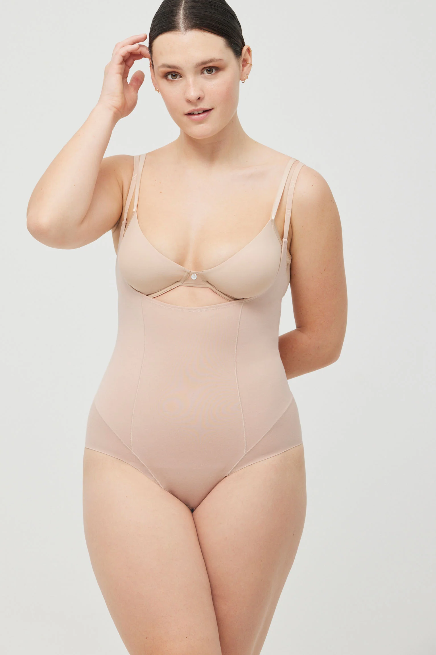 Body-up riducente e modellante, stile guaina, in cotone naturale. Compressione media. Modella la figura senza rinunciare alla comodità. La classica mutandina altamente riducente, con spalline per una migliore aderenza al corpo. Stilizza e modella. Perfetto per eventi e occasioni speciali. Tessuto antibatterico. Colore nudo.