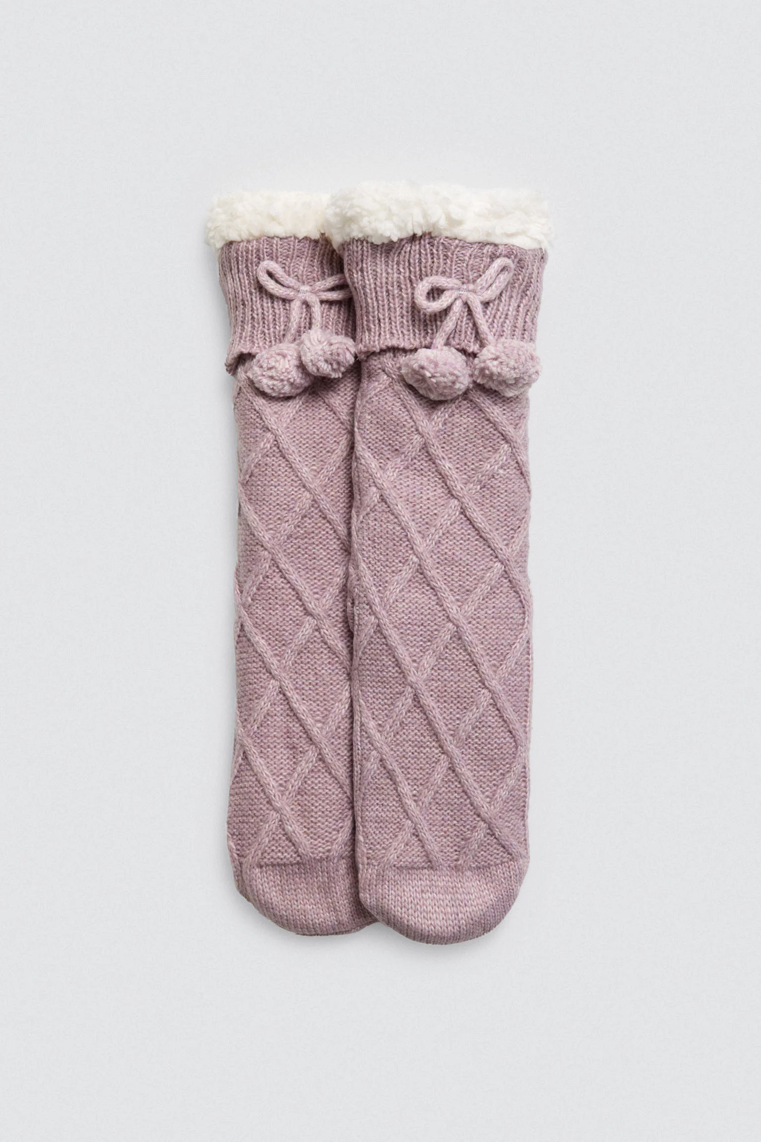 Confezione da 4 calzini da donna a doppia maglia. Questo modello ha un polsino anti-pressione e una mano extra morbida. Colore lilla. 100% poliestere.