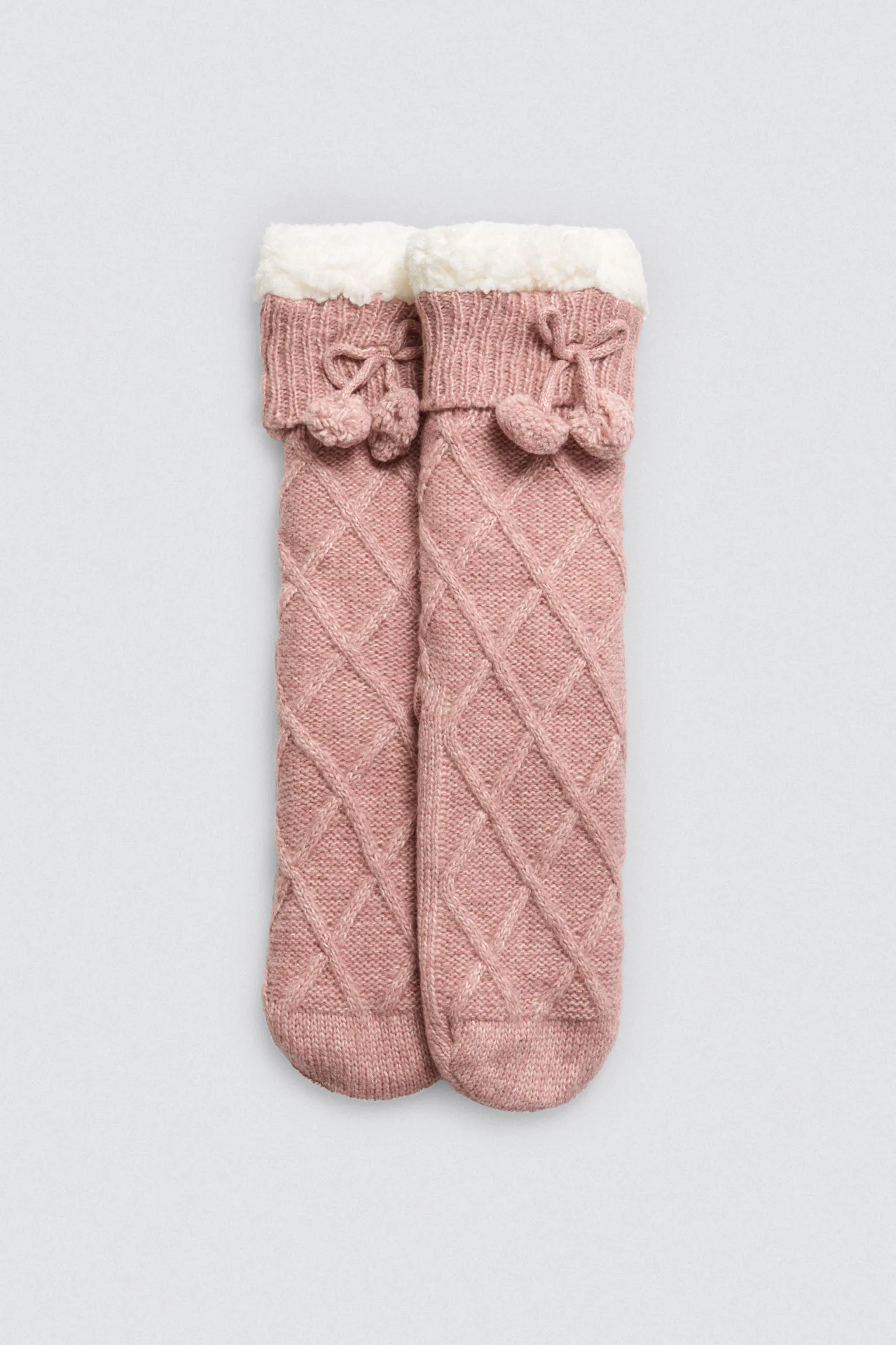 Calzini antiscivolo da donna a doppio strato. Questo modello ha un polsino anti-pressione e una sensazione extra morbida. Rosa. 100% poliestere.