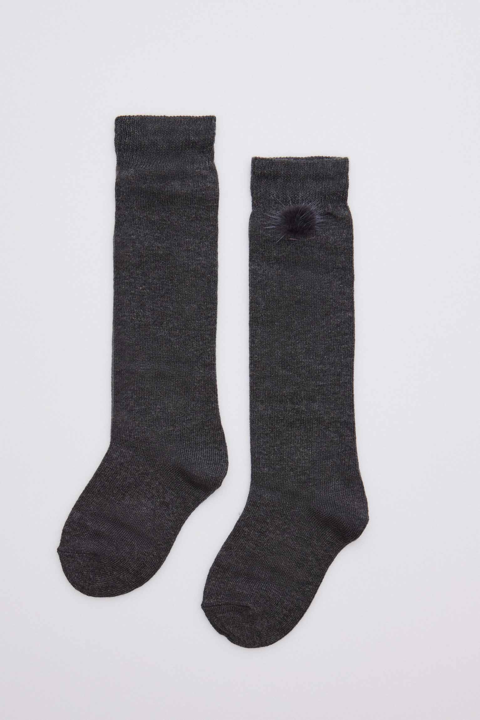 Calzino lungo per bambini con pompon. Realizzato con cotone e polsino antipressione. Ideale per look più particolari ed eleganti.