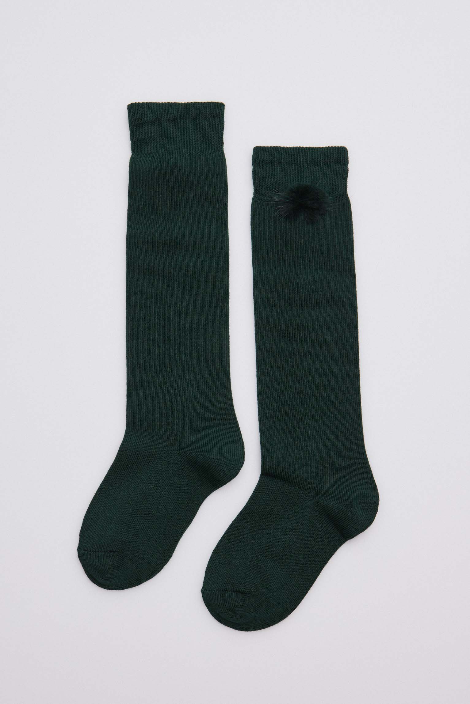 Calzino lungo per bambini con pompon. Realizzato con cotone e polsino antipressione. Ideale per look più particolari ed eleganti.