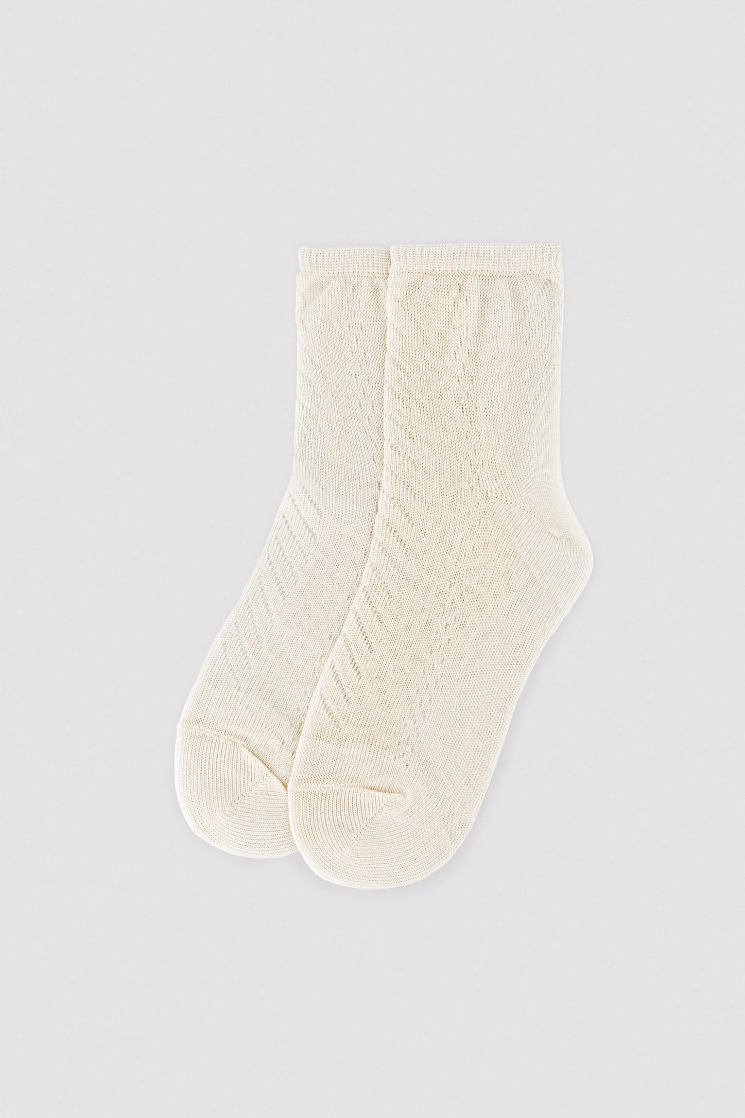 Calzini per bambini in maglia aperta, in tonalità naturali, appositamente progettati per eventi e occasioni speciali. Un’opzione in cotone fresca e adattabile per i ragazzi.per ragazzi.
