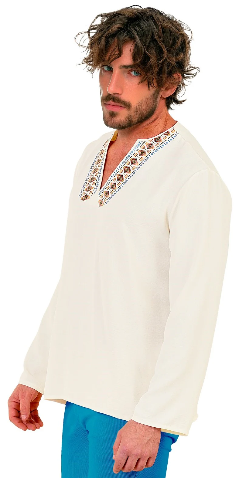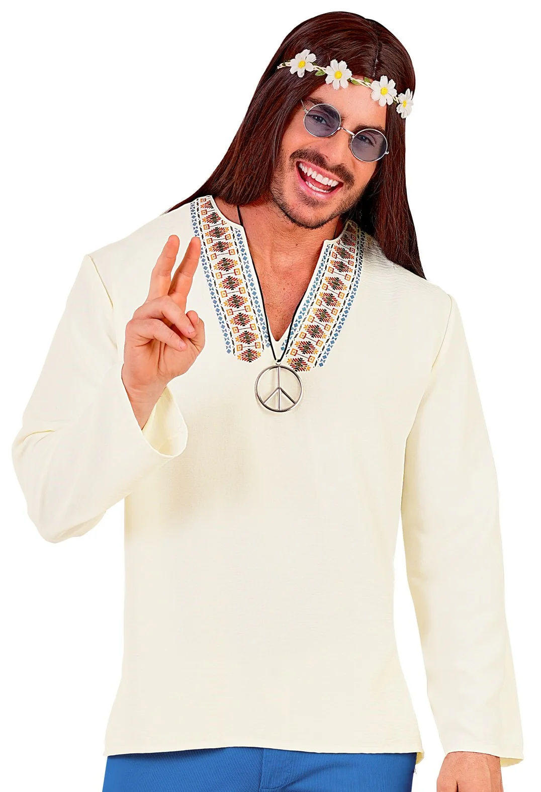 Stai cercando una camicia hippie per il tuo costume? Con la camicia hippie da uomo in colore bianco avrai il complemento perfetto per travestirti nello stile hippie più puro degli anni ’60 e trionferai alla tua festa in maschera.