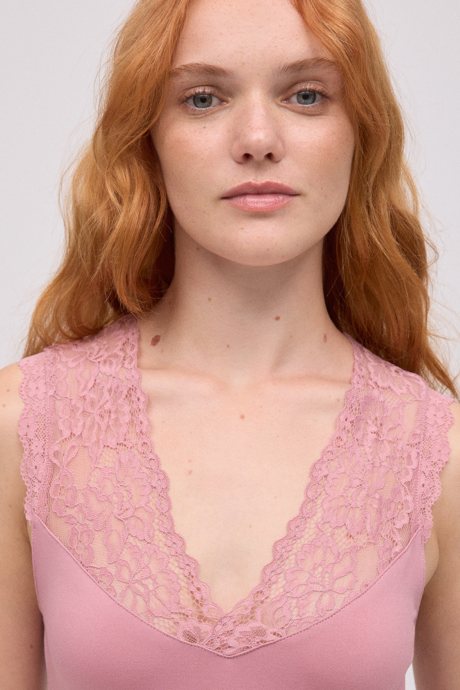 - Dettaglio in pizzo sullo scollo per una finitura sofisticata.