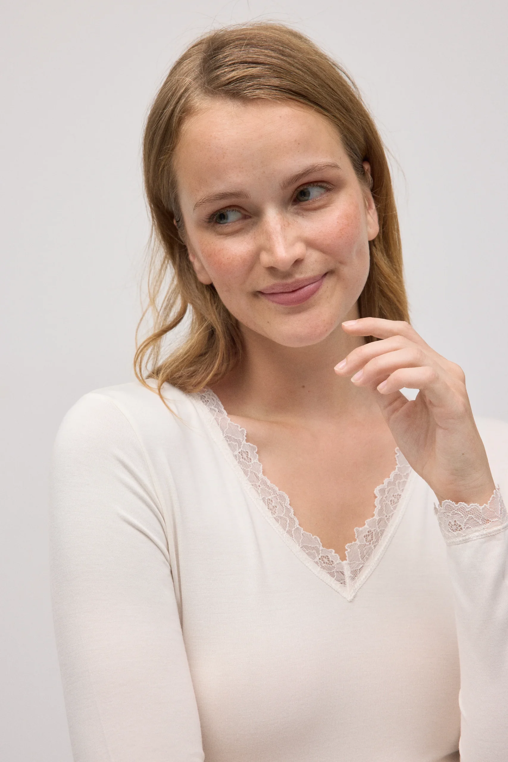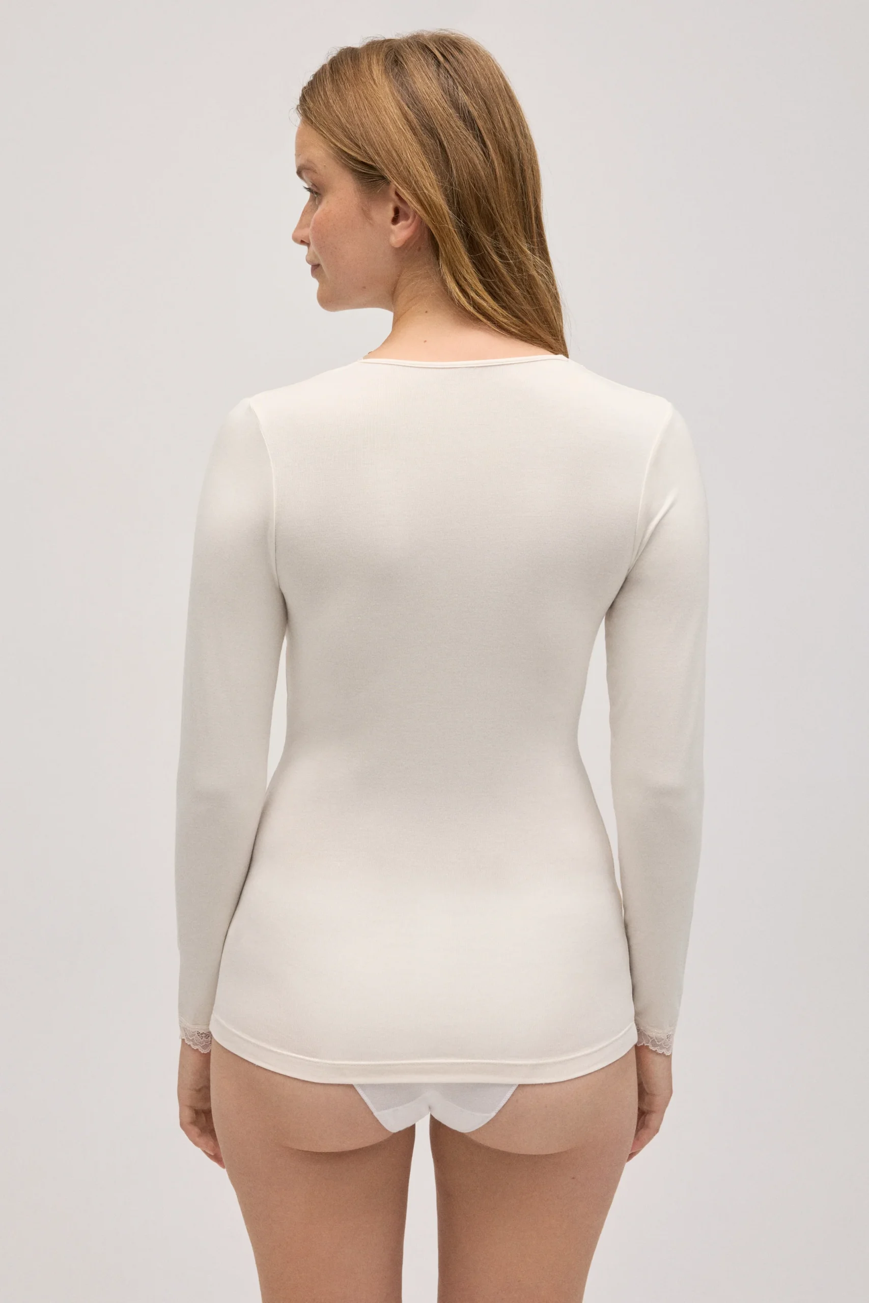 Canottiera a maniche lunghe in bambù color avorio.