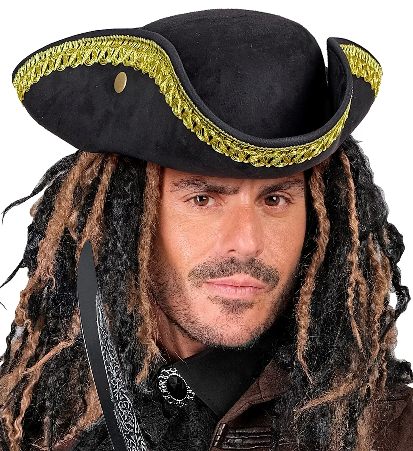 Stai cercando un cappello d’epoca per il tuo costume? Con il cappello tricorno nero in camoscio per uomo o donna avrai l’accessorio più elegante per una grande varietà di costumi come nobile barocco, veneziano, ammiraglio, generale o pirata e trionferai alla tua festa in maschera.