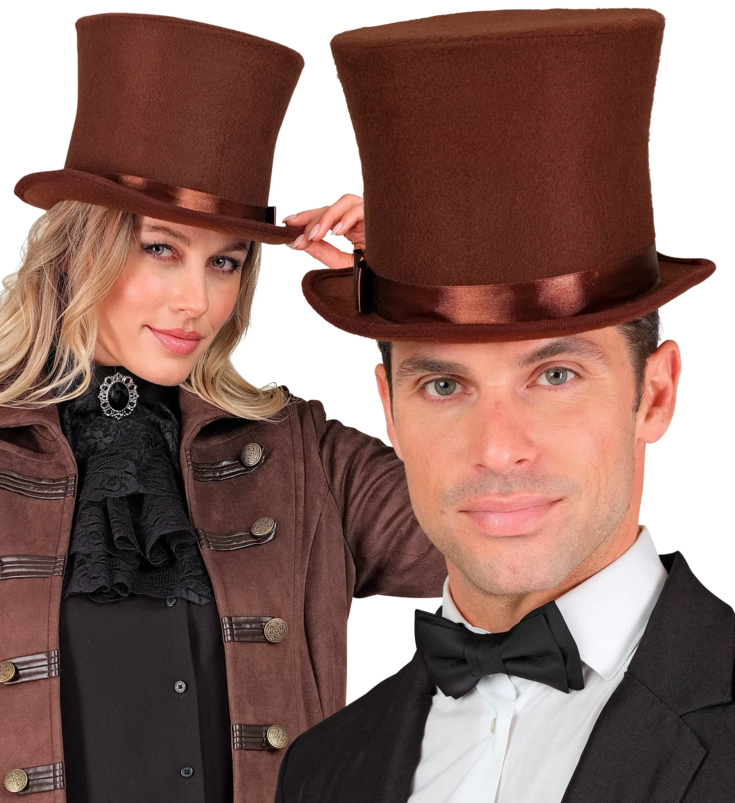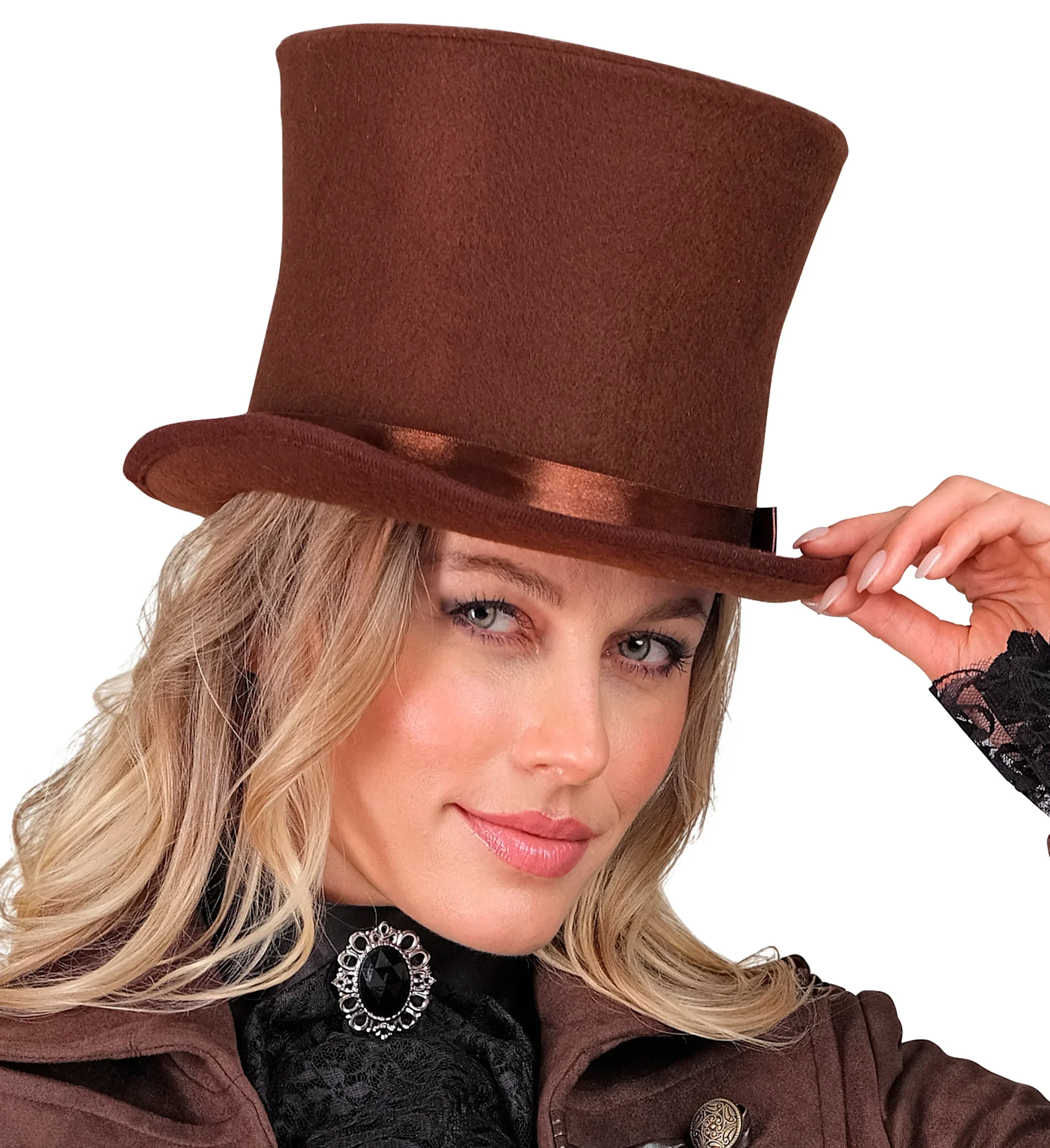 Stai cercando un cappello a cilindro per il tuo costume? Con il cilindro marrone in pile con nastro per uomo o donna avrai un accessorio elegante per una grande varietà di costumi come steampunk o d’epoca e trionferai alla tua festa in maschera.