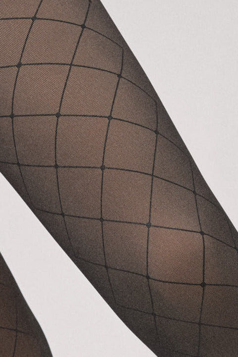 Collant termico velato 160 denari con effetto trasparente e interno in peluche. Questo modello presenta una stampa a rombi.