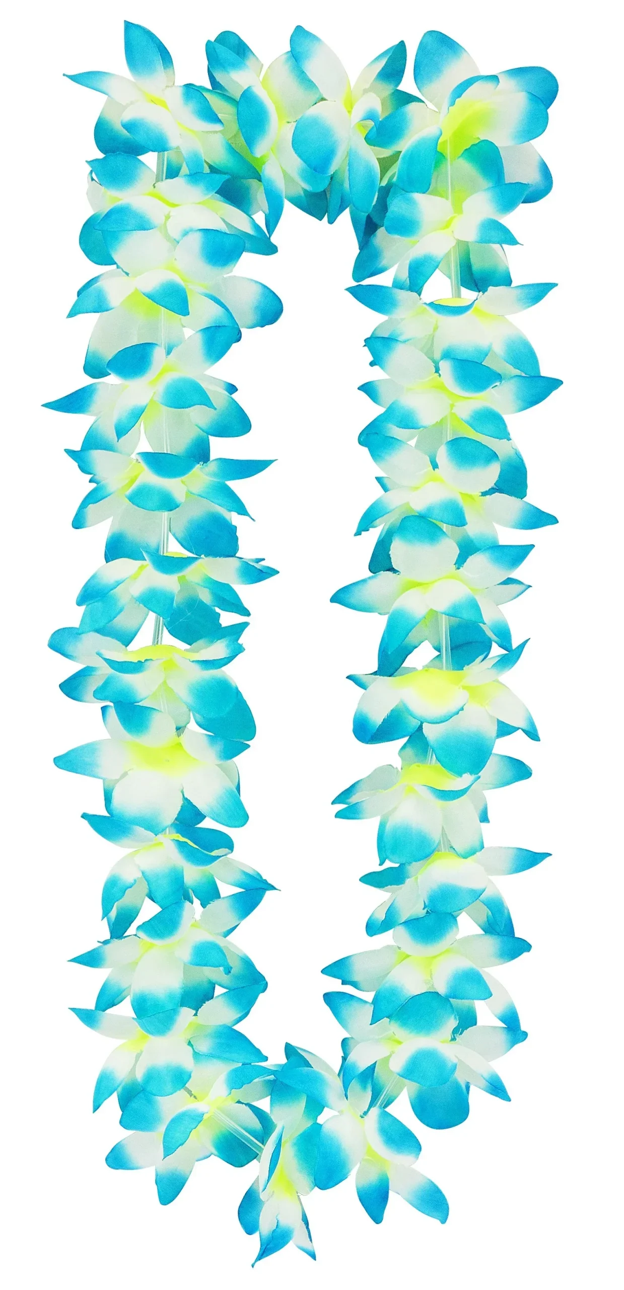 Collare Hawaiano di Fiori Tropicali Blu e Bianchi