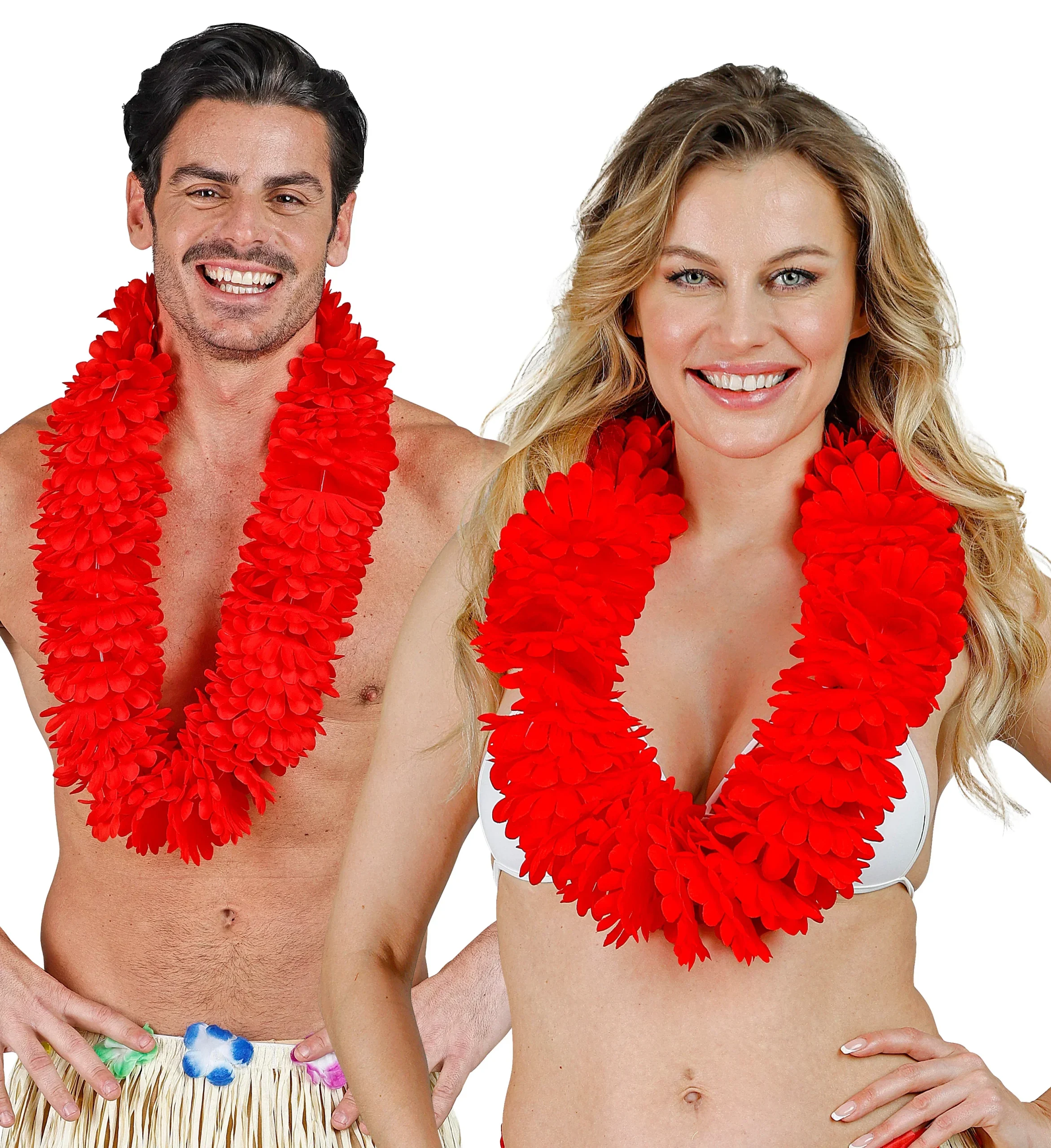 Stai cercando una collana di fiori per il tuo costume da hawaiano o hawaiana? Con la collana di fiori tropicali di colore rosso avrai il complemento perfetto per la tua festa hawaiana.