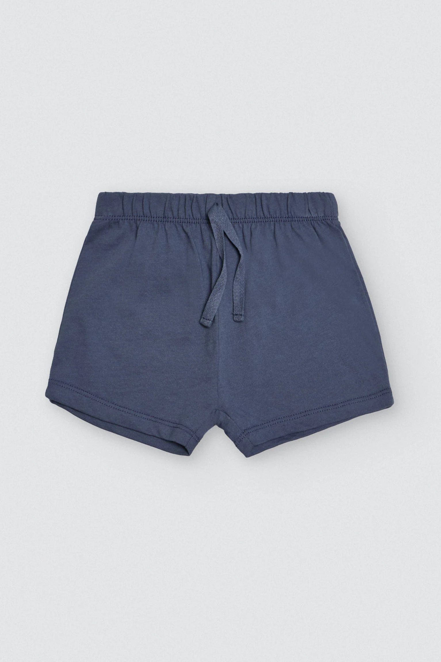 Set da bambino con maniche corte e pantaloncini in cotone naturale. Con questo set il tuo bambino avrà un aspetto perfetto e si sentirà a suo agio a giocare nei pomeriggi estivi. T-shirt a righe e coccodrillo. I pantaloncini sono blu, testurizzati e si abbinano perfettamente alla t-shirt.