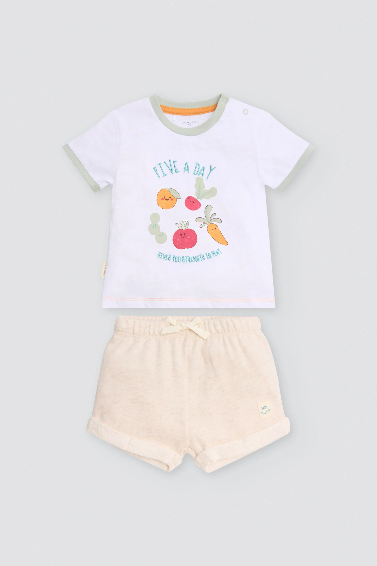 Pratico completo t-shirt per neonato. L’uso di cotone di prima qualità assicura che il tuo piccolo rimanga fresco e comodo per tutto il giorno.