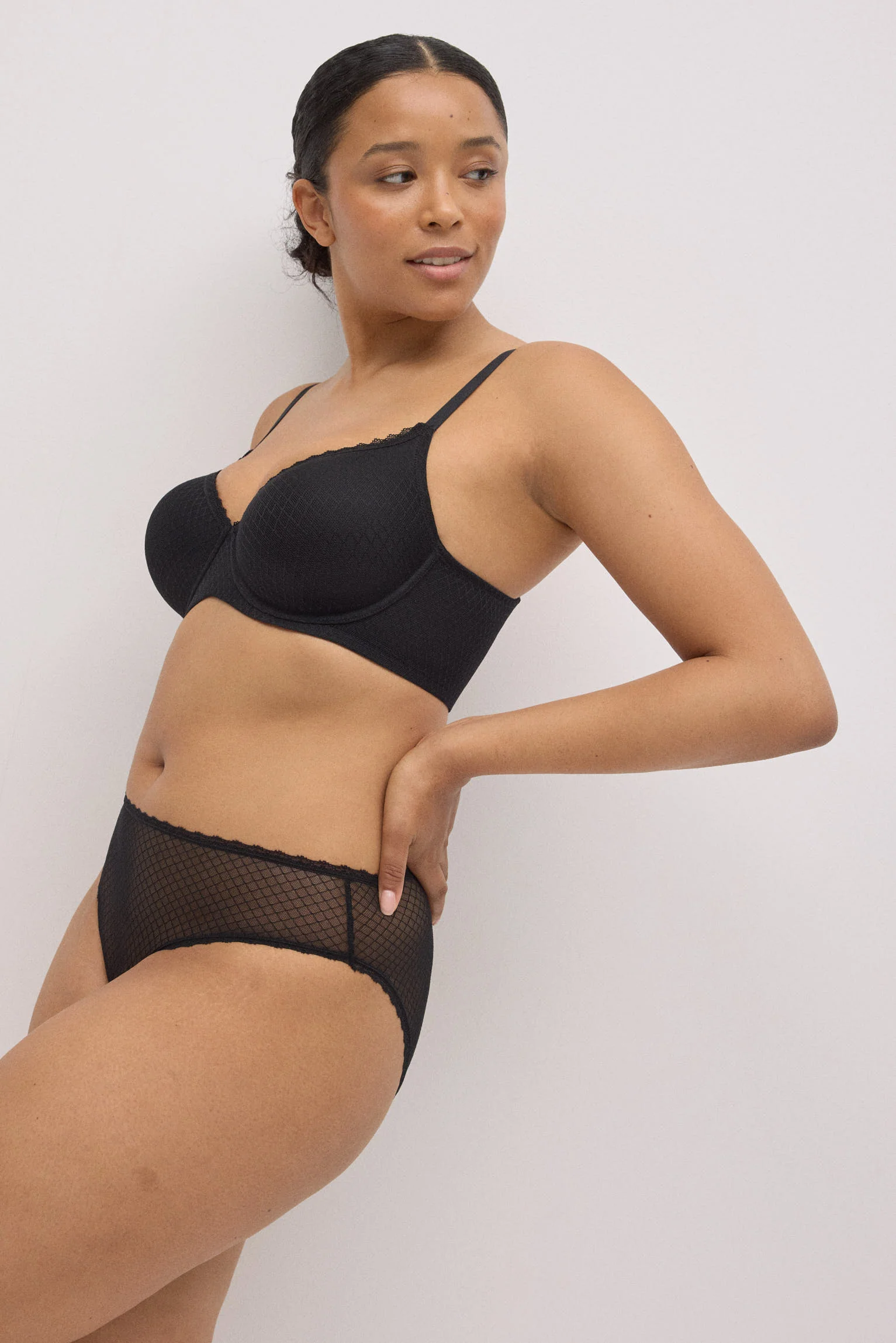Completo reggiseno imbottito con ferretto coppa C e slip midi neri