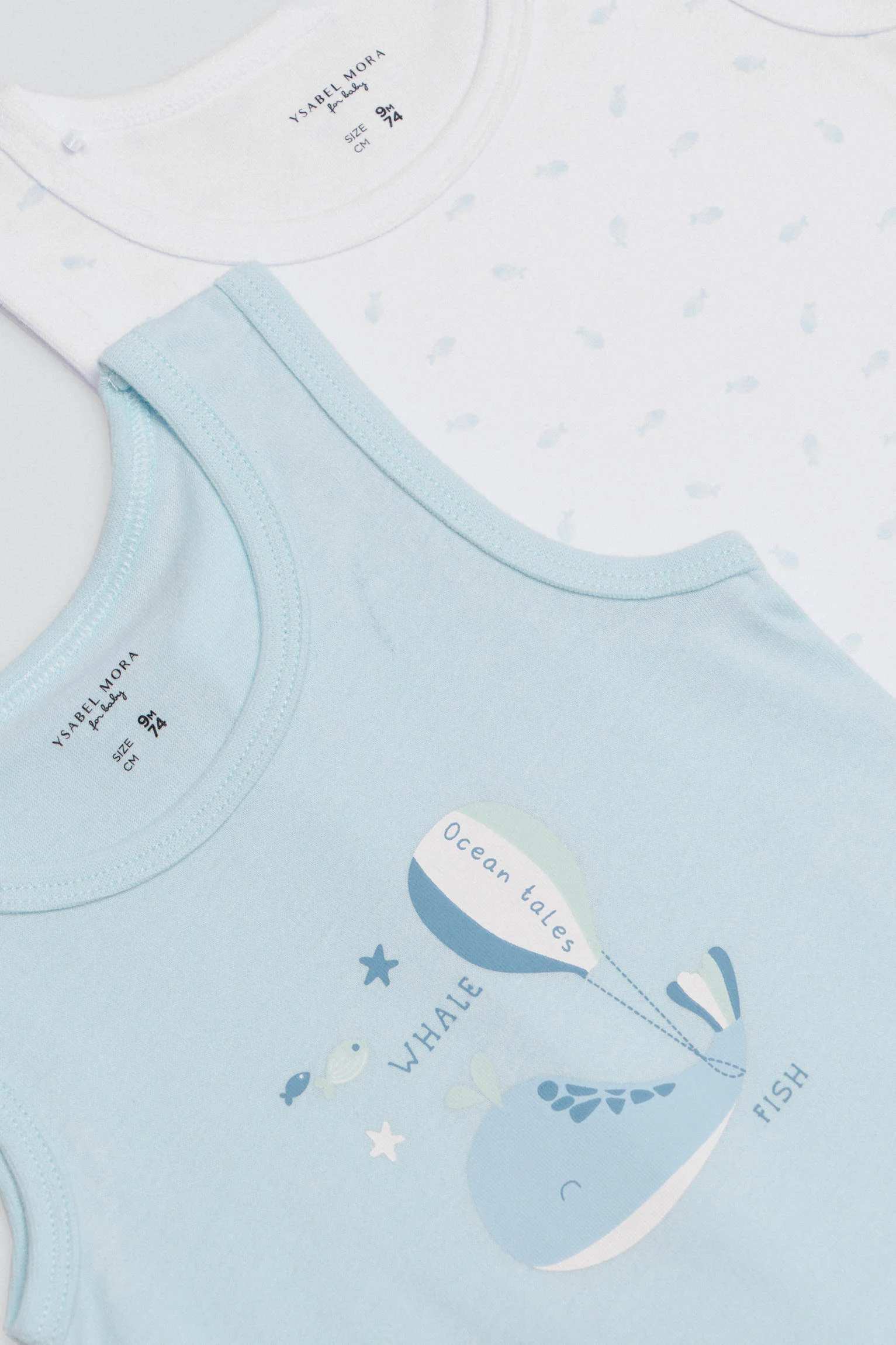 Confezione da 2 body con spalline per bambini. Realizzato con cotone naturale al 100% in modo che i più piccoli possano sentirsi comodi e sicuri. Stampa balena.