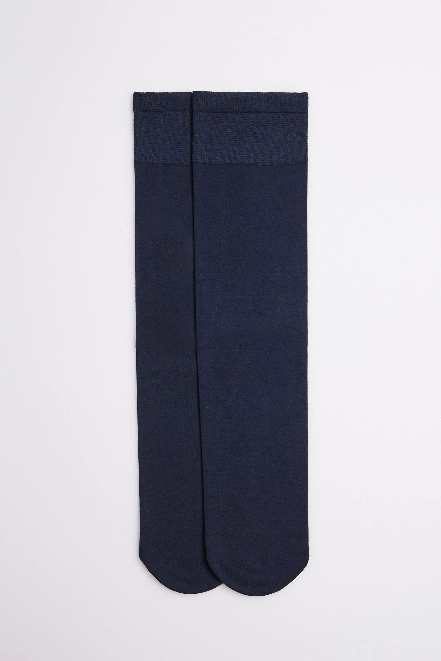 Confezione da 2 paia di calzini da uomo stile executive. Tessuto di tipo medio da 70 denari. Colore blu scuro.