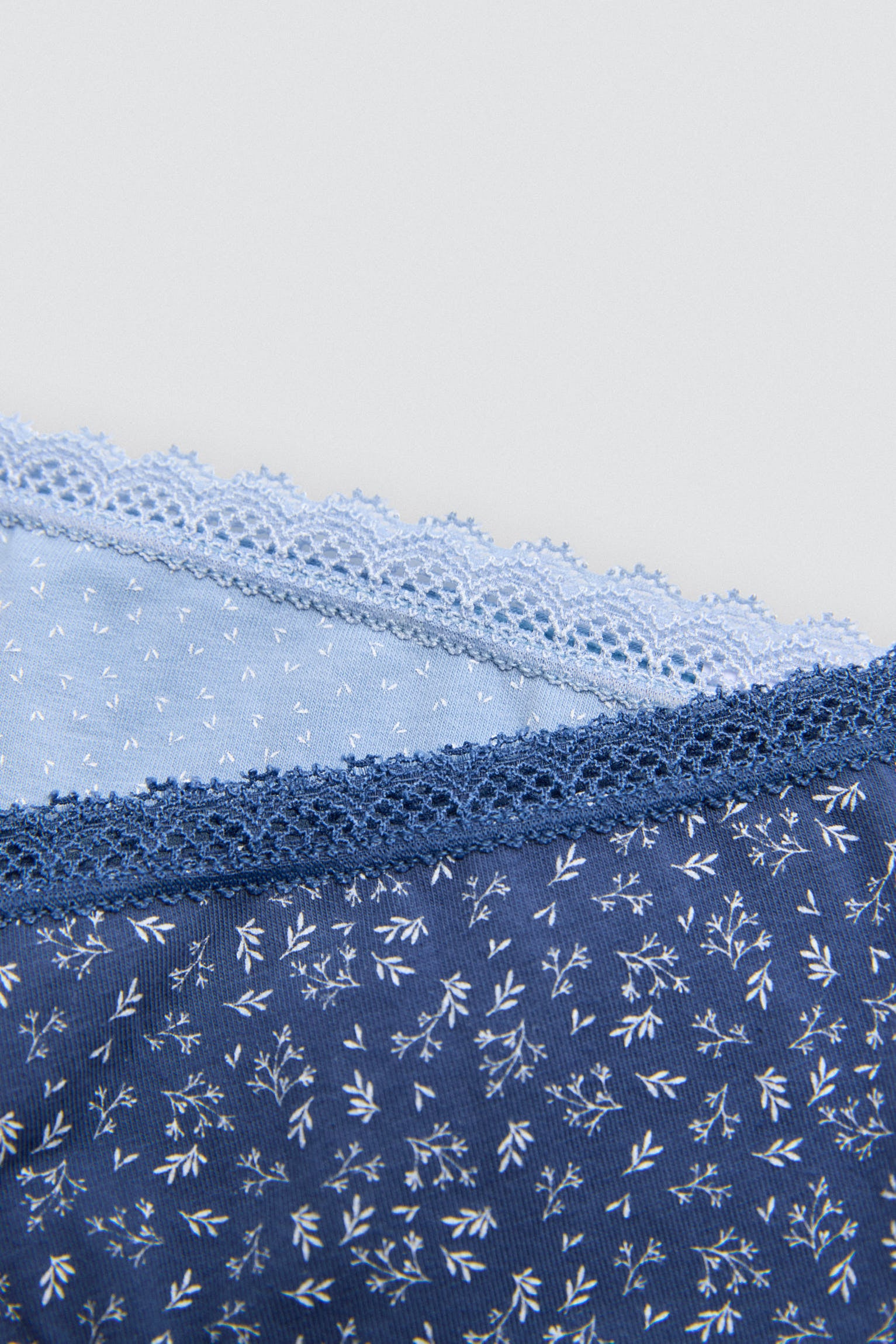 - Stampe floreali: Disegni in delicate tonalità di blu abbinabili.