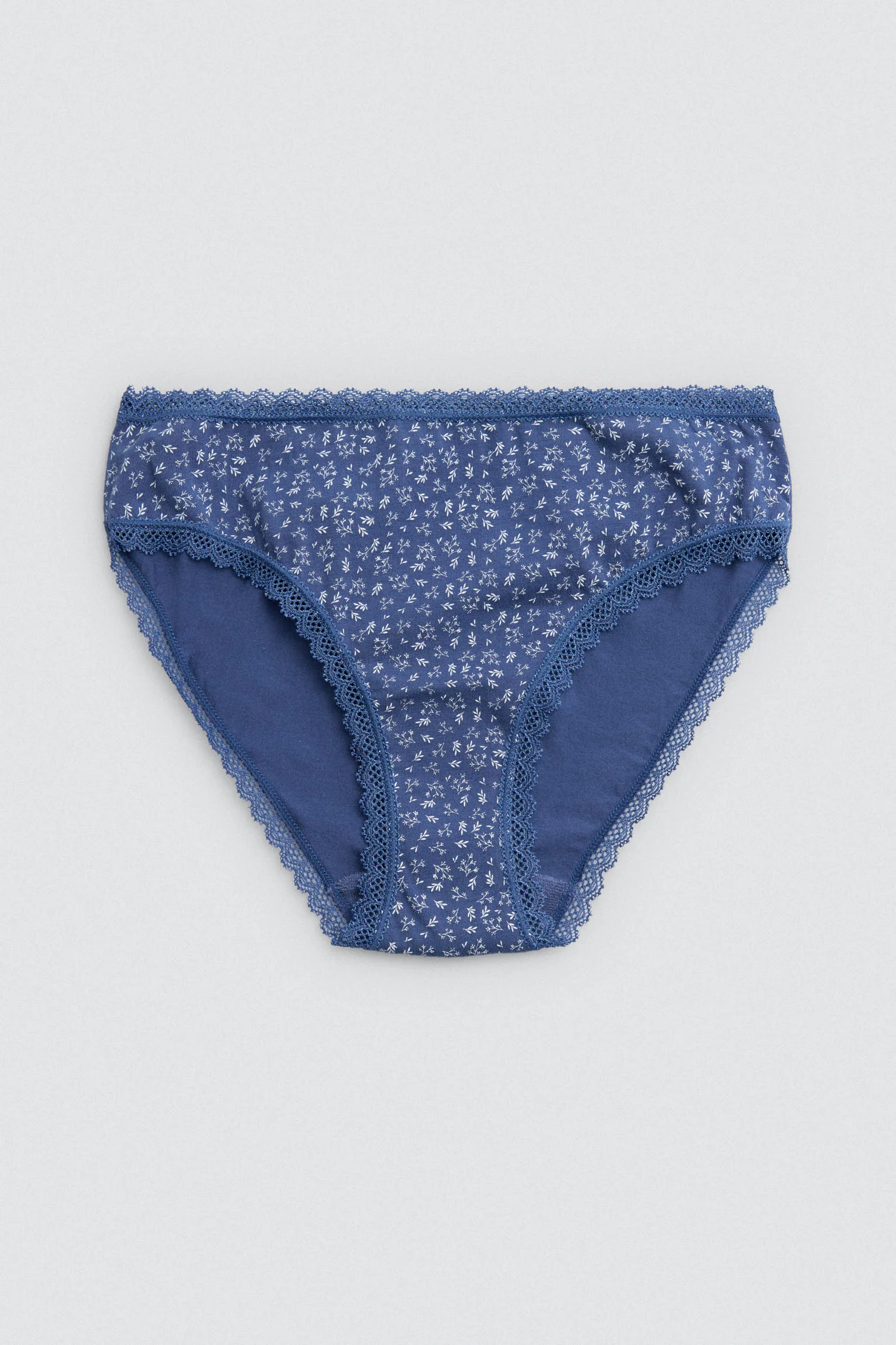Confezione da 2 slip midi in cotone naturale per morbidezza, comfort e adattabilità. Include due modelli nelle tonalità del blu con delicate stampe floreali e un elegante bordo in pizzo. Il taglio midi offre una maggiore copertura senza rinunciare alla femminilità.
