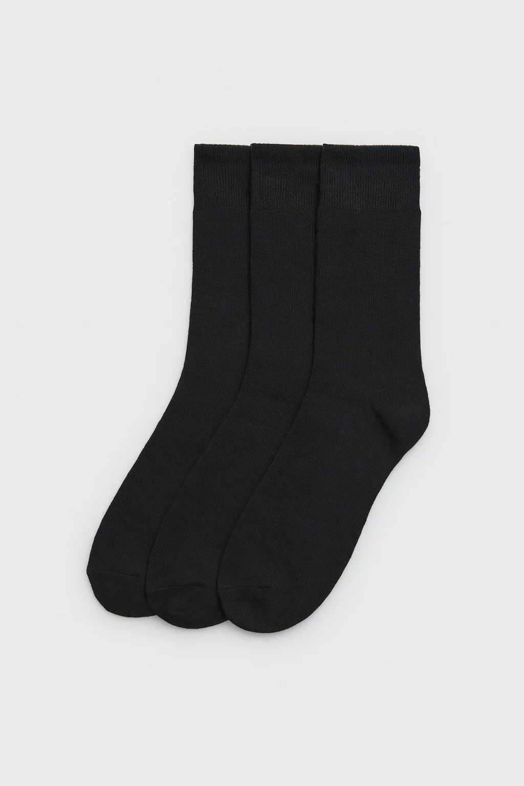 Confezione da 3calzini neri in bambù da donna. Il bambù è una fibra naturale traspirante, antiodore, morbida e confortevole. Polsino anti-pressione.