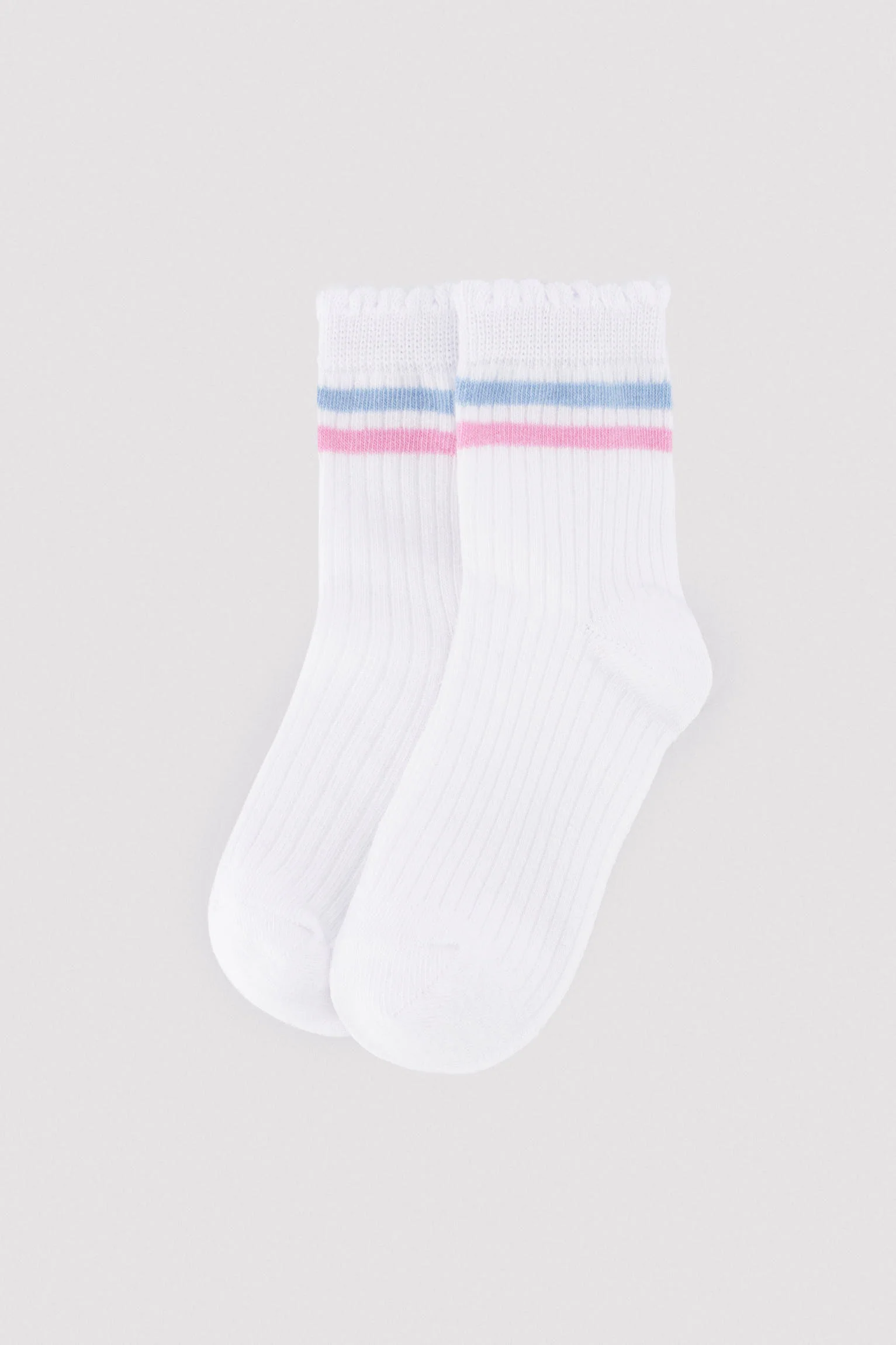 Confezione da 3 calzini corti con risvolto arrotolato e motivo a righe a contrasto. Un tocco classico e grazioso in cotone per bambine.