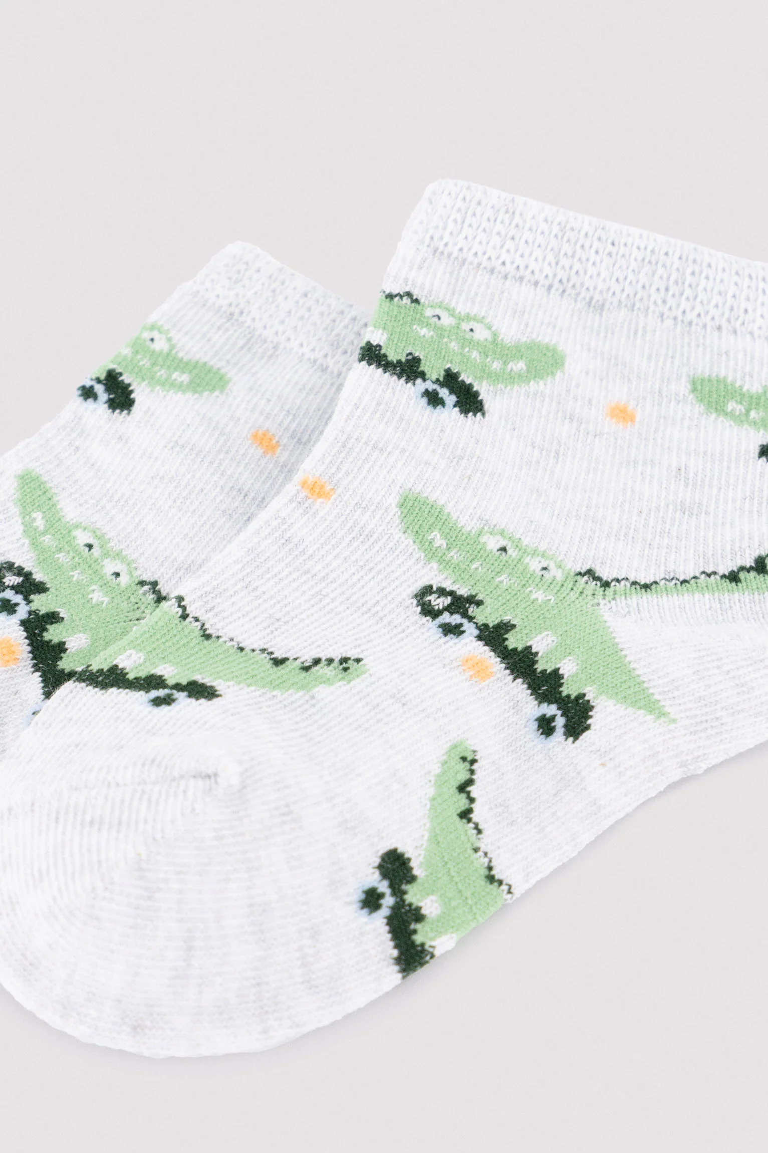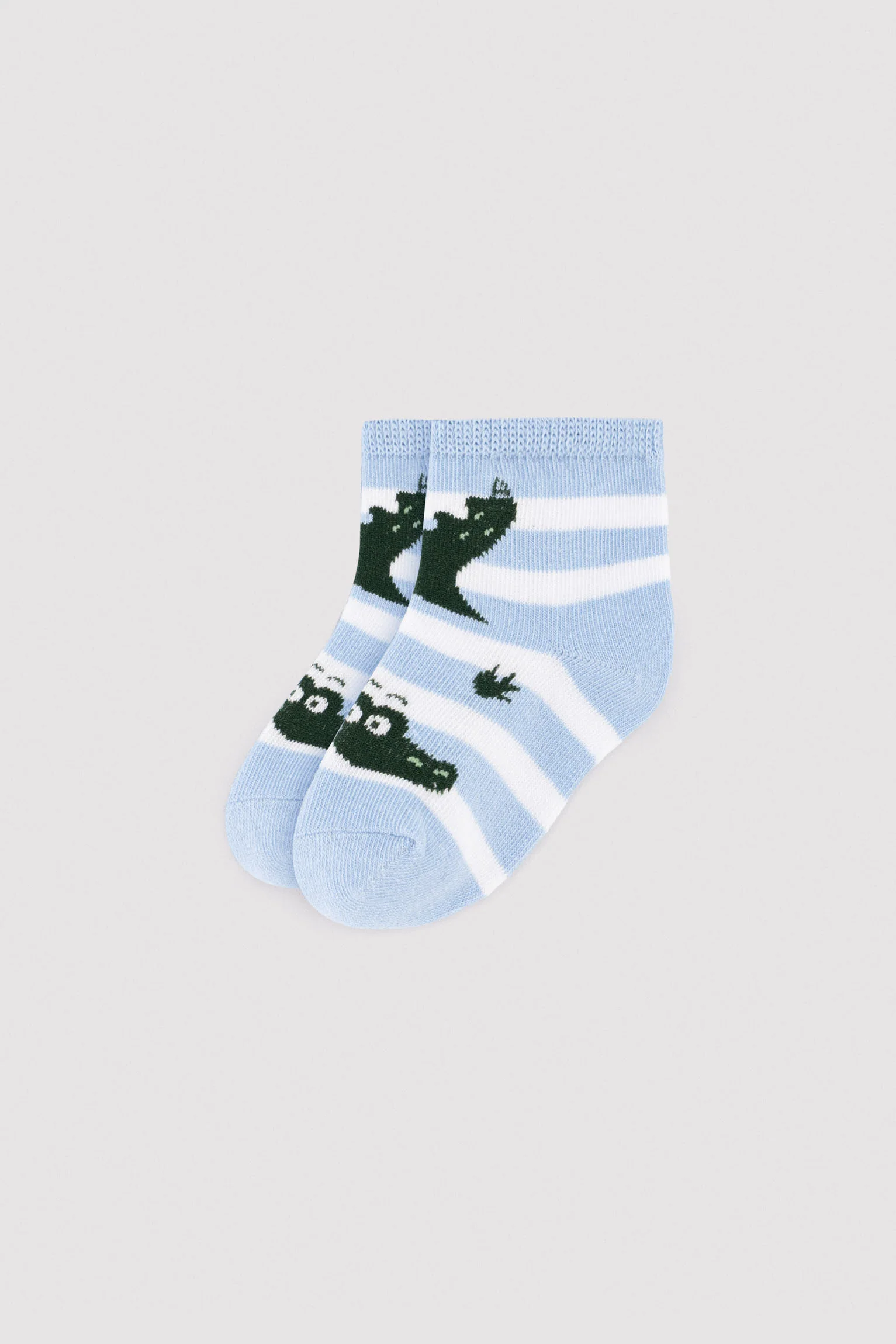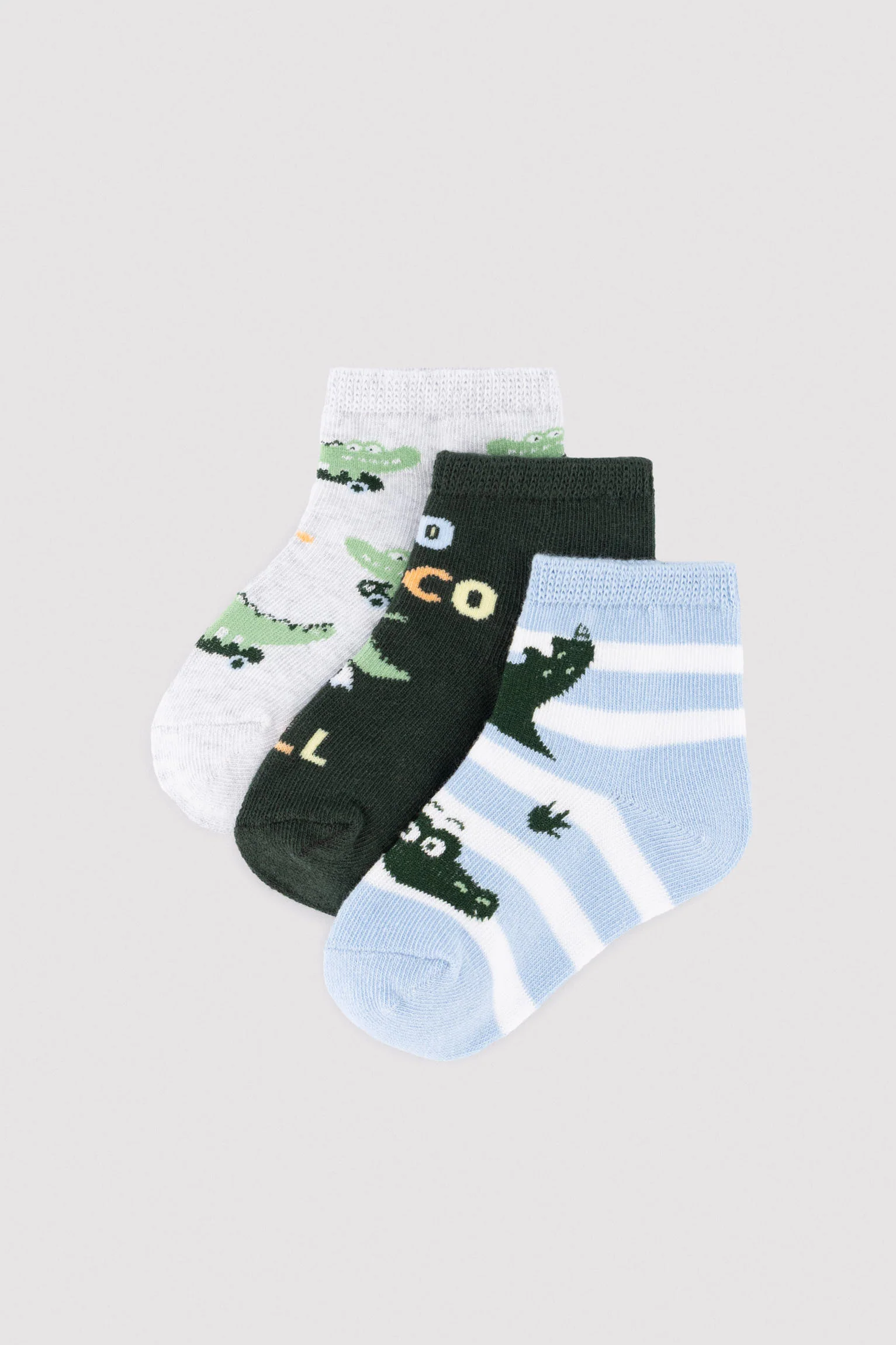 Tre paia di calzini corti per neonati con graziose stampe a coccodrillo. Realizzati per essere morbidi e delicati sulla pelle.