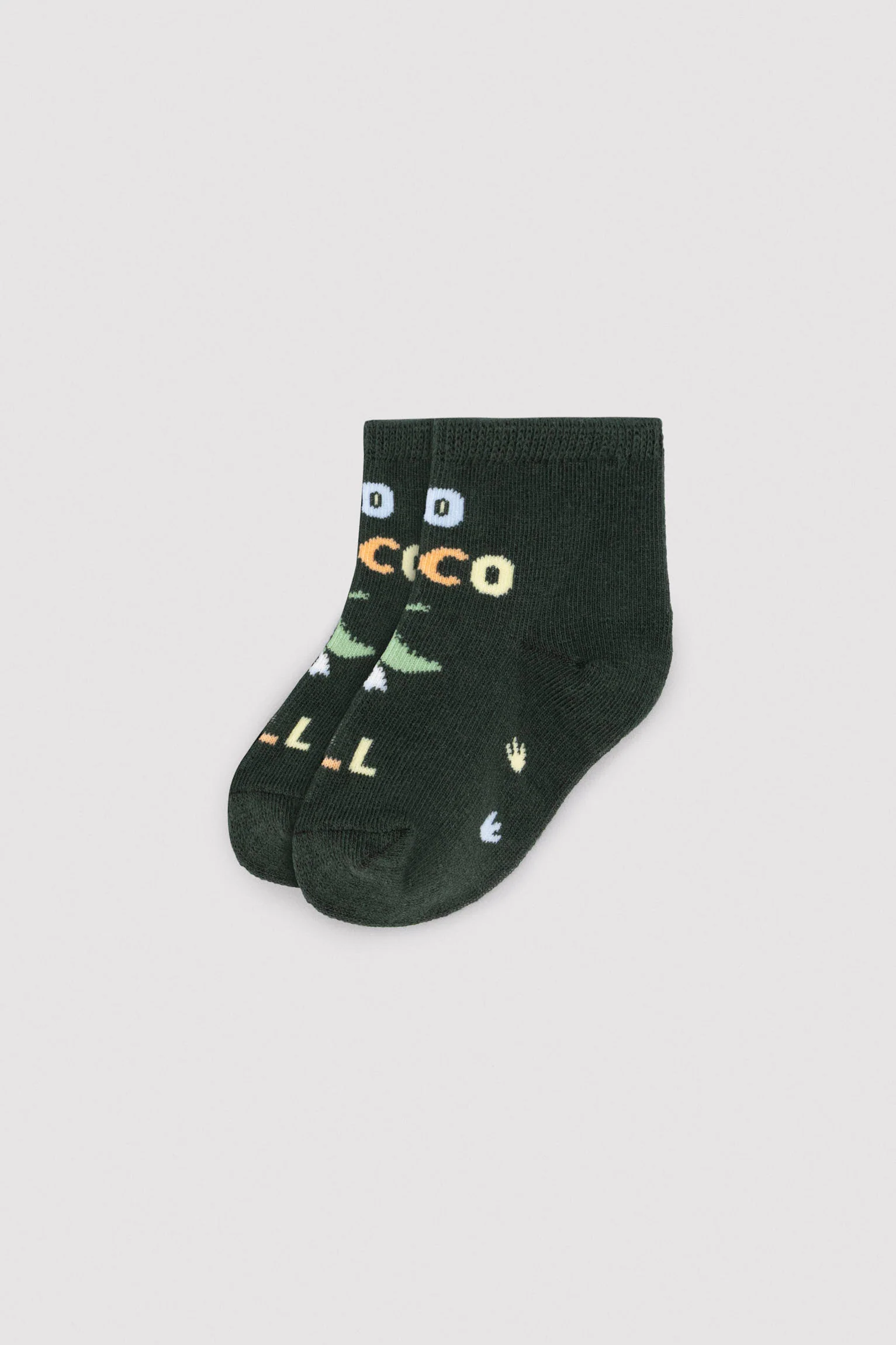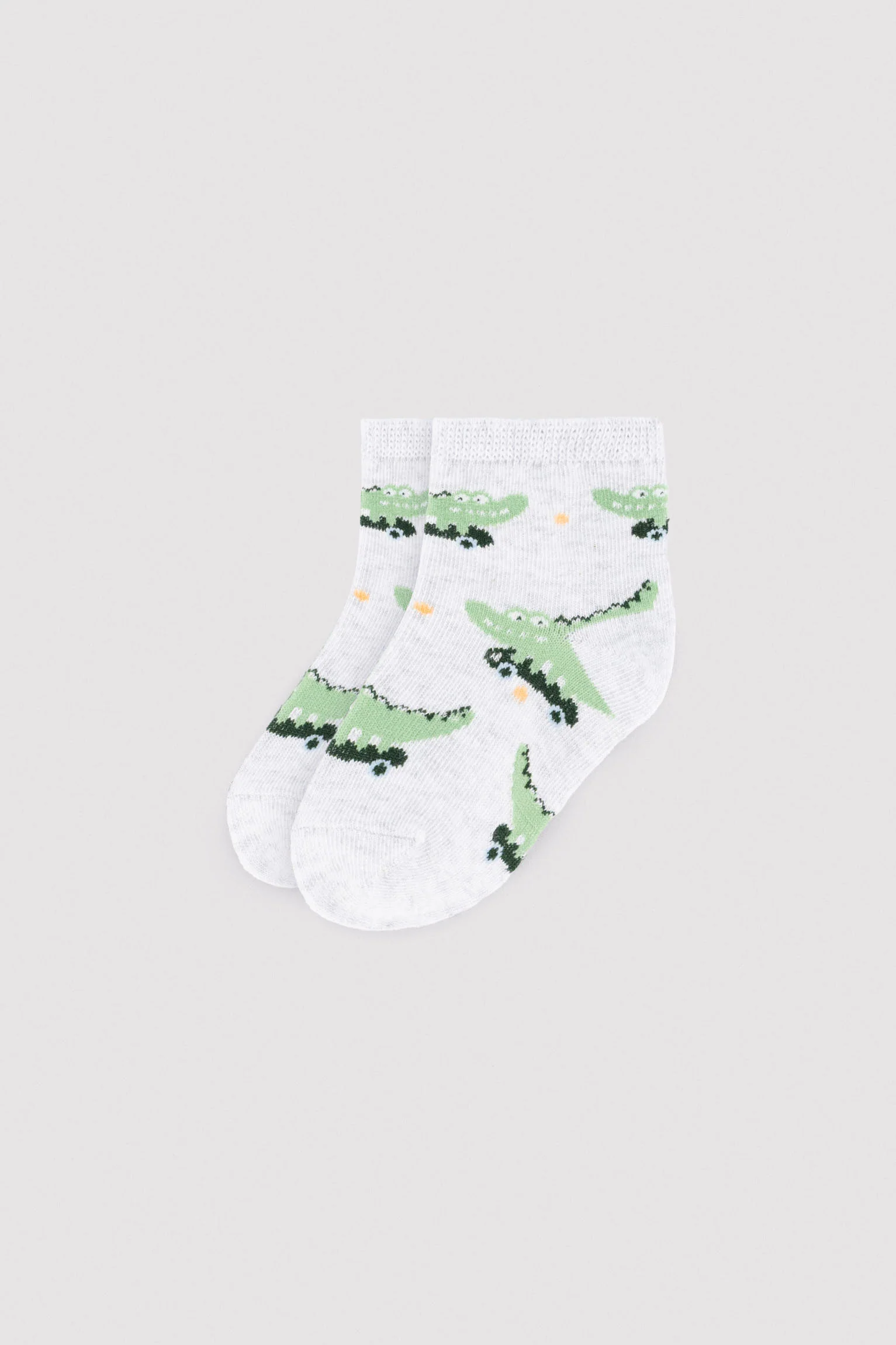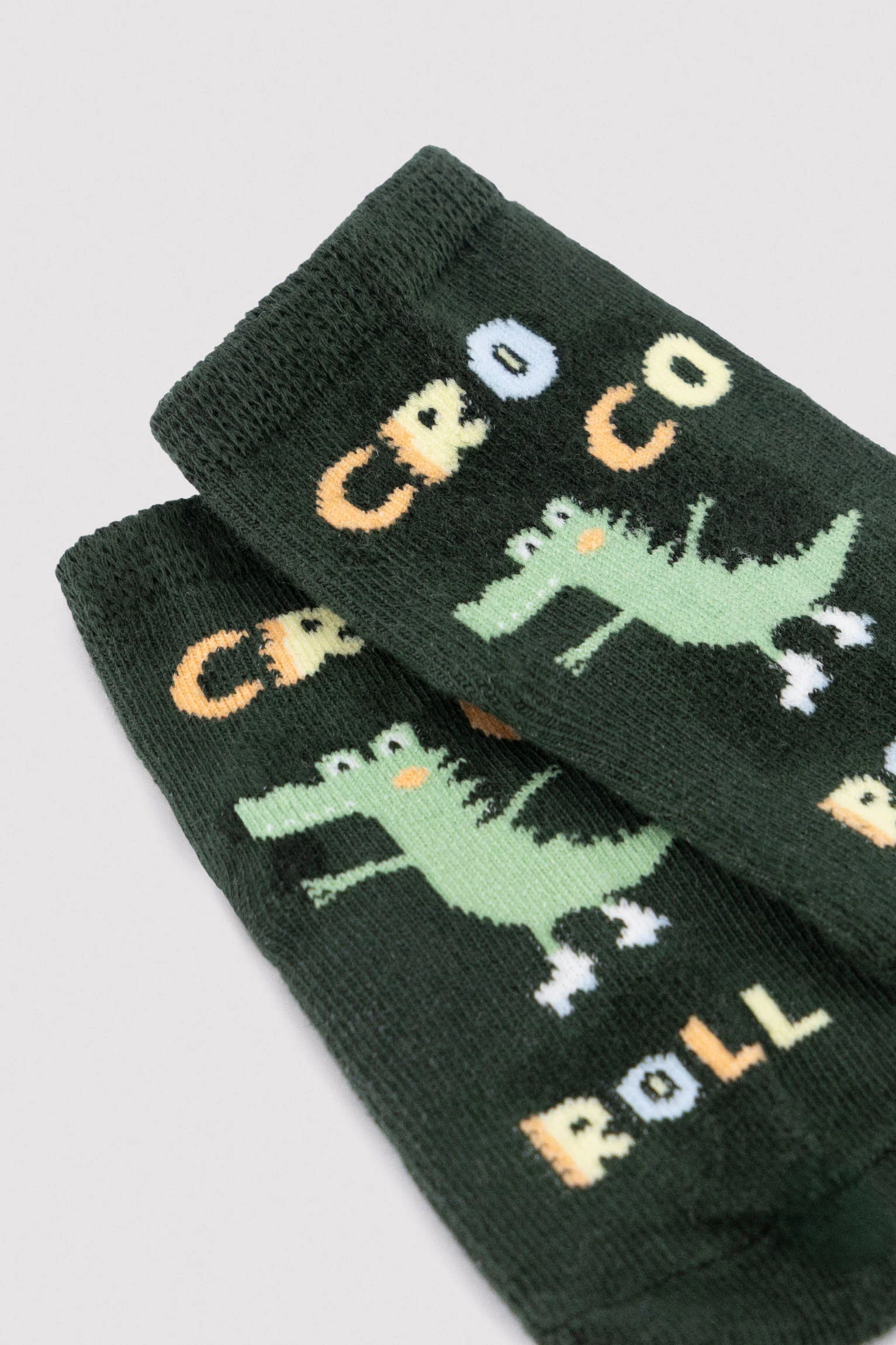 Tre paia di calzini corti per neonati con graziose stampe a coccodrillo. Realizzati per essere morbidi e delicati sulla pelle.