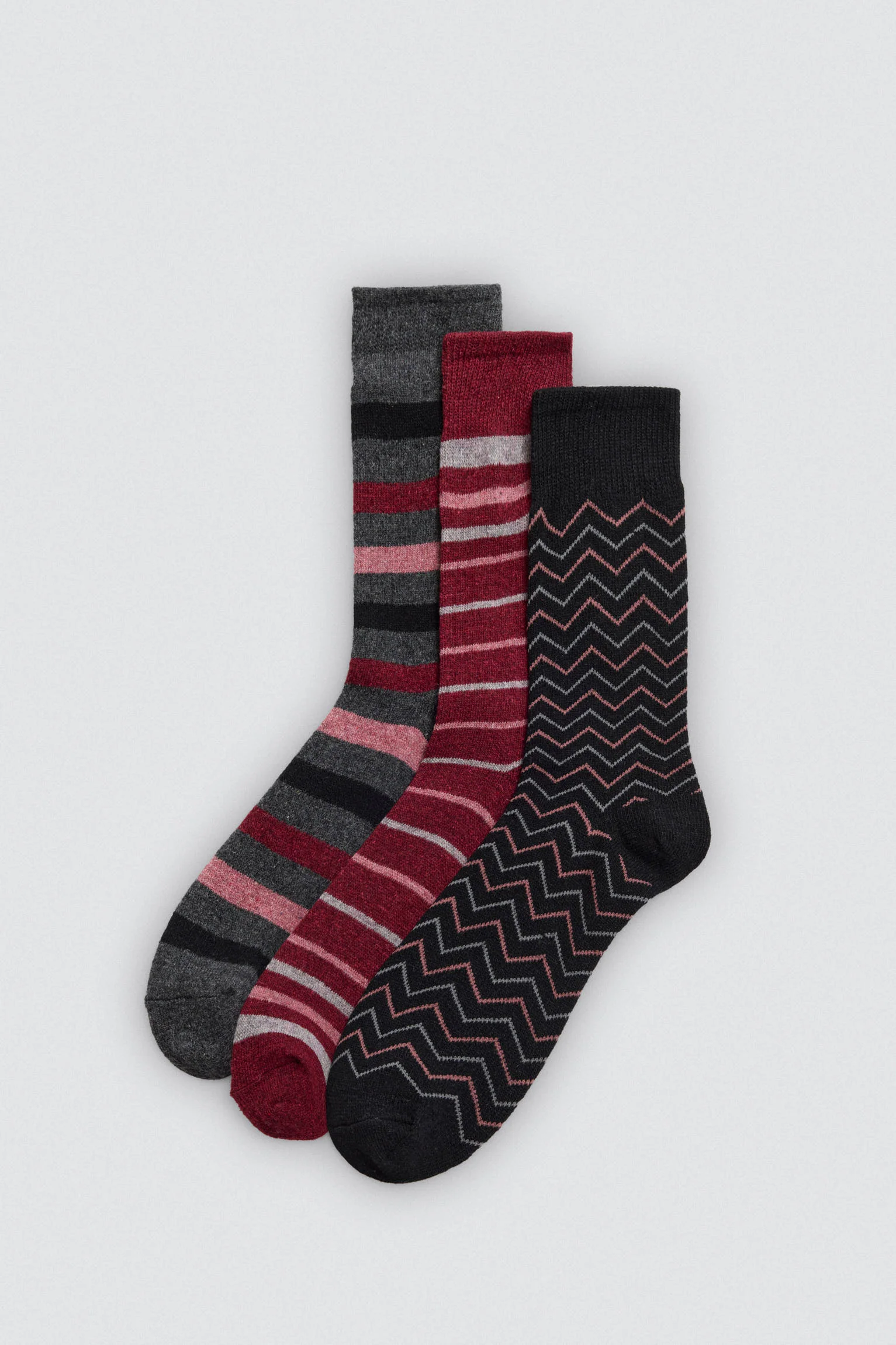 Confezione da 3 calzini da donna in lana fantasia. Questo modello presenta un polsino anti-pressione e una sensazione di extra-morbidezza.