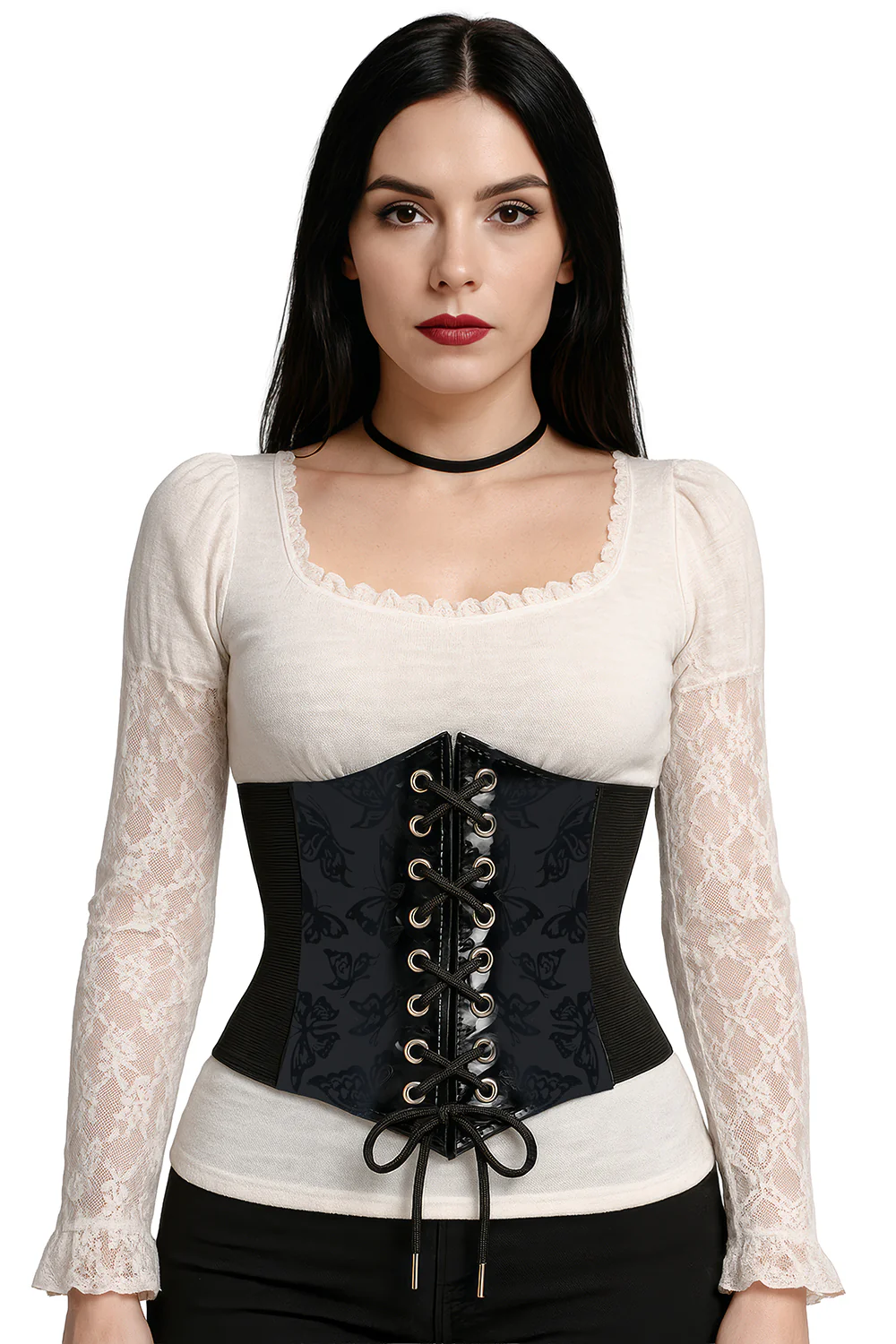 Stai cercando un corsetto per la tua festa? Con il corpetto elastico con velcro per donna in colore nero con stampa di farfalle avrai il complemento perfetto per una grande varietà di costumi come medievale, burlesque, ragazza gotica, epoca vittoriana e molti altri.