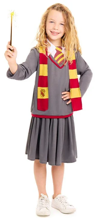 Stai cercando un costume di Hermione per tua figlia? Con il costume da apprendista strega per bambini avrai il vestito perfetto per travestire tua figlia come le studentesse del Collegio di Hogwarts di Magia e Stregoneria della Casa Grifondoro della famosa saga di film di “Harry Potter” e sarà la bambina più bella della festa in maschera.
