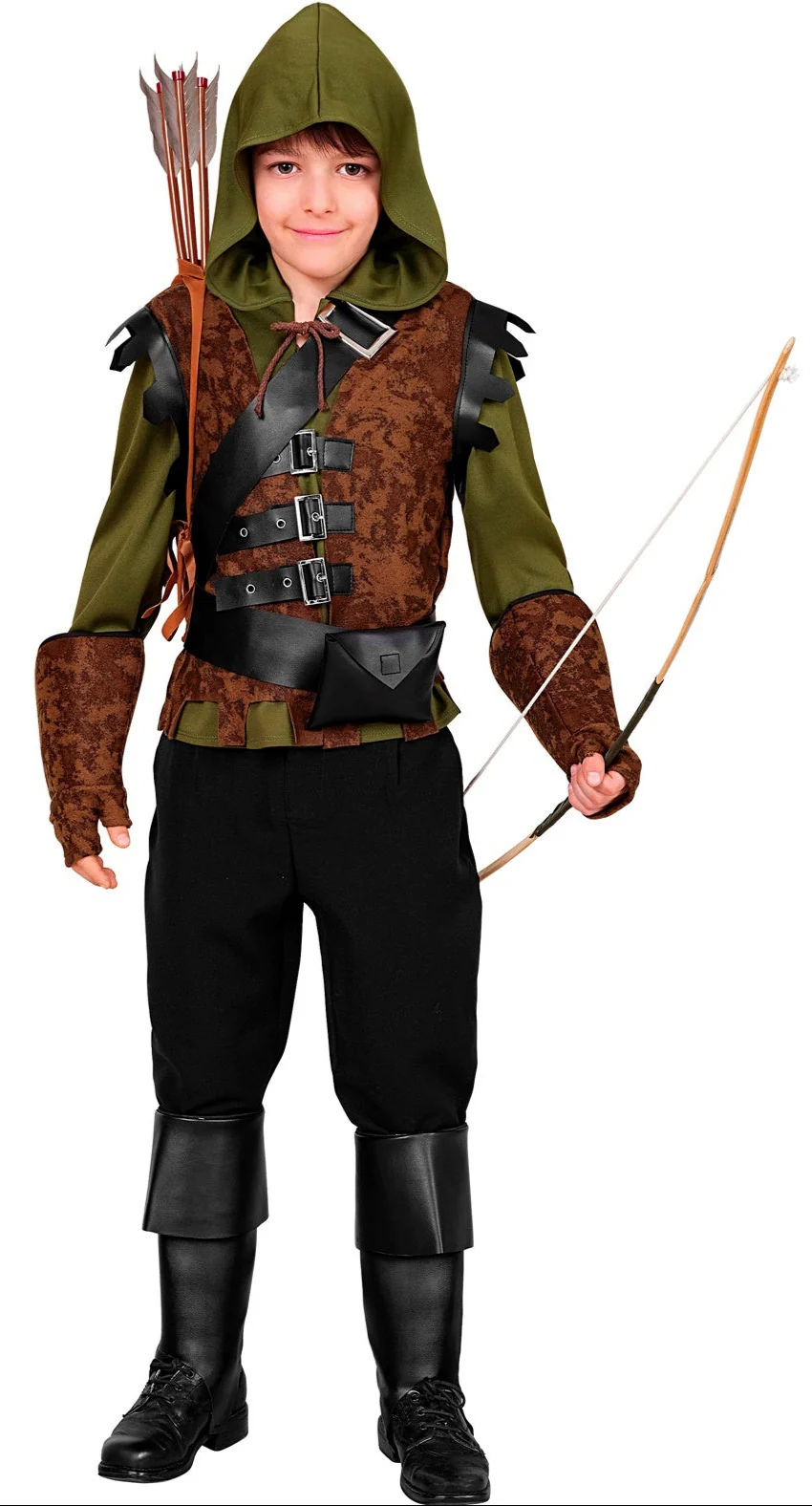 Stai cercando un costume di Robin Hood per tuo figlio? Con il costume da arciere Robin Hood per bambino avrai il vestito perfetto per travestire tuo figlio come questo principe dei ladri della foresta di Sherwood che rubava ai ricchi per dare ai poveri e sarà il bambino più bello della festa in maschera.
