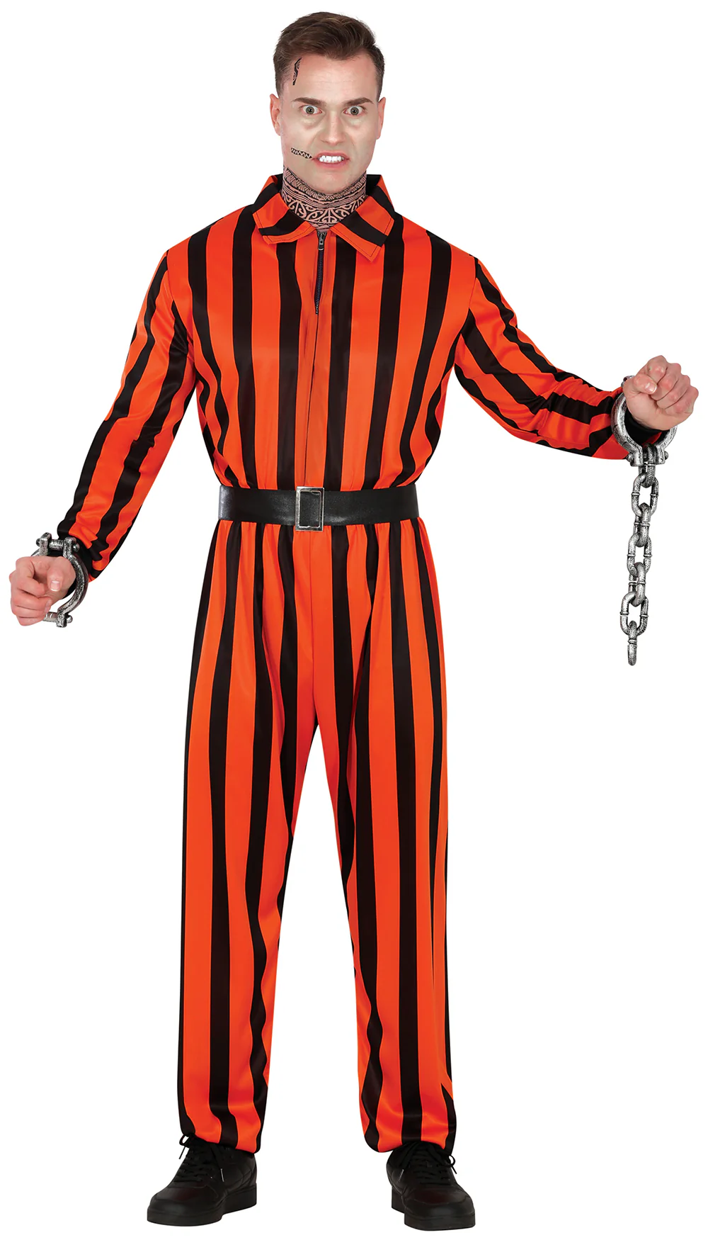 Stai cercando un costume da pagliaccio assassino per la tua festa di Halloween? Con il costume da prigioniero arlecchino per uomo avrai il vestito perfetto per travestirti da un terrificante pagliaccio psicopatico carcerato e trionferai alla tua festa di Halloween.