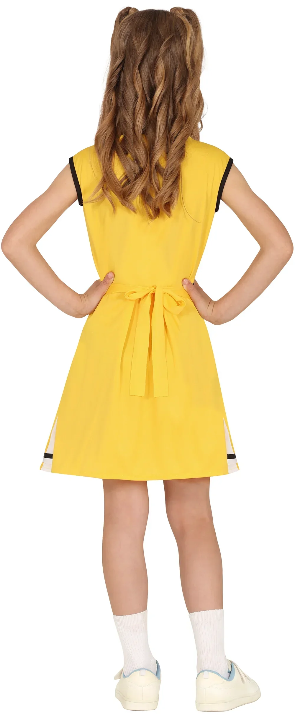 Stai cercando un costume da cheerleader per tua figlia? Con il costume da animatrice per bambini in colore giallo e bianco avrai il vestito perfetto per travestire tua figlia come la capo delle cheerleader di una squadra di football americano e sarà la bambina più bella della festa in maschera.