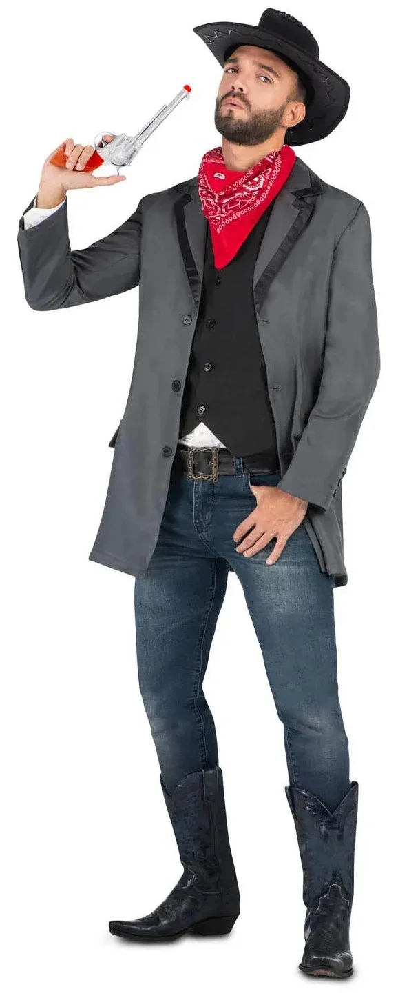 Stai cercando un costume da cowboy per la tua festa? Con il costume da cowboy pistolero per uomo avrai il completo perfetto per travestirti da fuorilegge del vecchio west e trionferai alla tua festa in maschera.