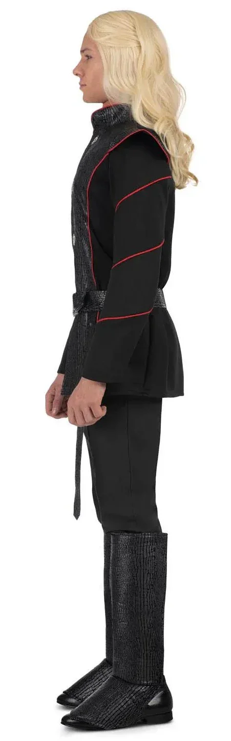 Vuoi travestirti come i personaggi de La Casa del Dragón? Con il costume Daemon Targaryen per uomo avrai il completo perfetto per travestirti come questo principe guerriero della Casa Targaryen, fratello minore del re Viserys I Targaryen e marito della regina Rhaenyra Targaryen della famosa serie televisiva “La Casa del Dragón” di HBO. Inoltre, questo completo può anche servire come costume di Aemond Targaryen, il fratello monco del re Aegon II Targaryen.