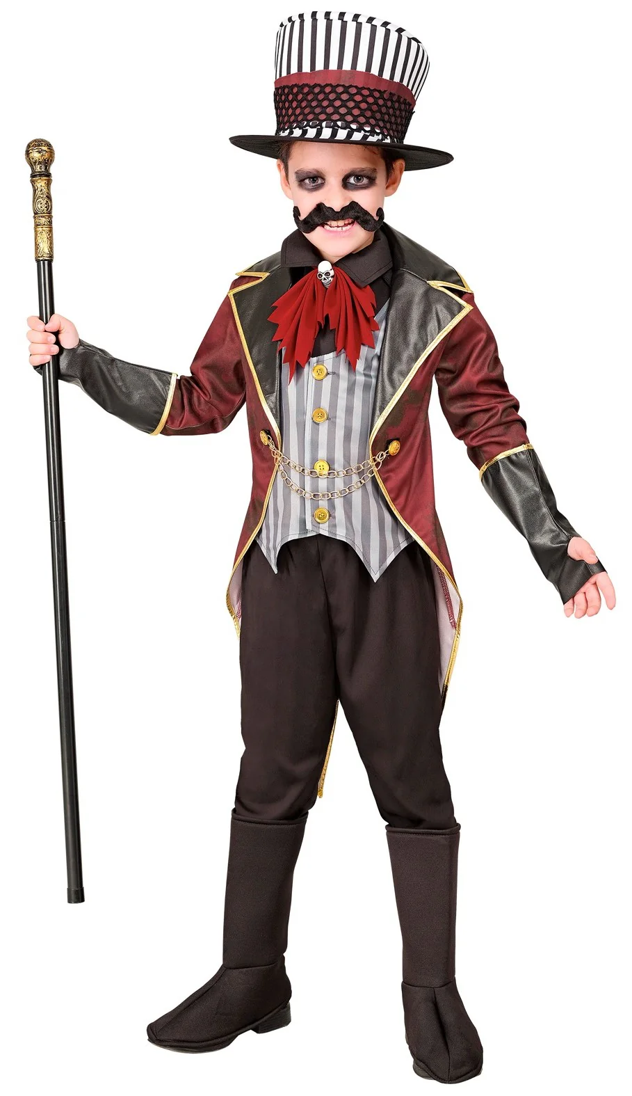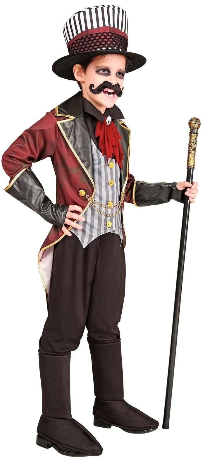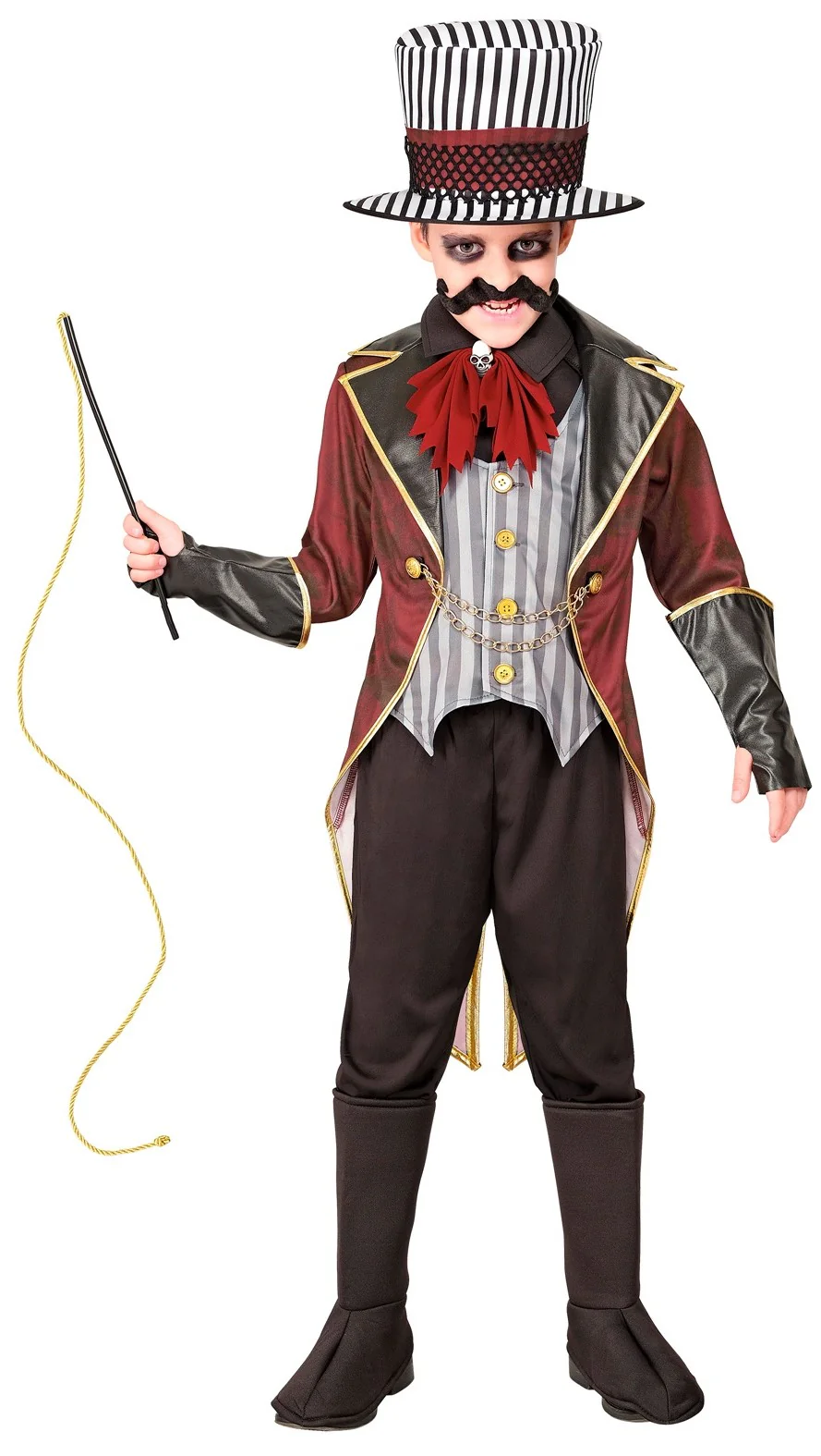 Stai cercando un costume originale per la festa di Halloween di tuo figlio? Con il costume da domatore sinistro per bambini avrai il vestito più terrificante ed elegante per travestire tuo figlio alla sua festa di Halloween come il capo pista del circo degli orrori.