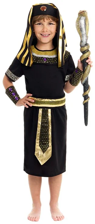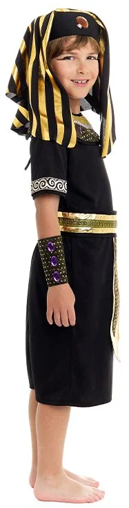 Stai cercando un costume da faraone egiziano per tuo figlio? Con il costume da faraone del Nilo per bambini in colore nero avrai il vestito più elegante per travestire tuo figlio come questi re dell’antico Egitto che erano adorati come se fossero dei sulla Terra e sarà il bambino più bello della festa in maschera.