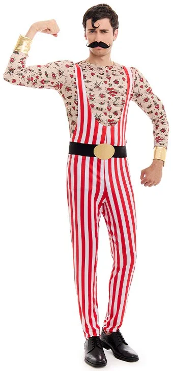 Stai cercando un costume da forzuto per la tua festa? Con il costume da forzuto per adulto con tatuaggi avrai il vestito perfetto per travestirti come un autentico forzuto da circo degli anni ’20 o per travestirti come Prince Constantine, l’uomo tatuato del famoso film “Il Grande Showman” e trionferai alla tua festa in maschera.