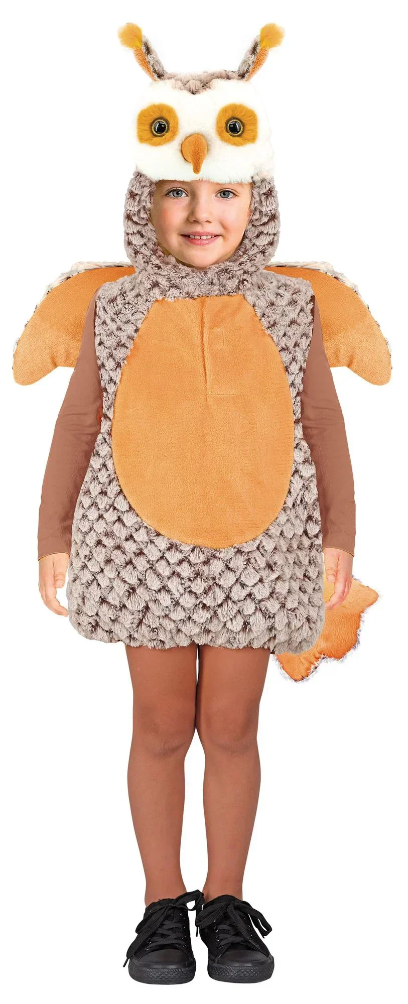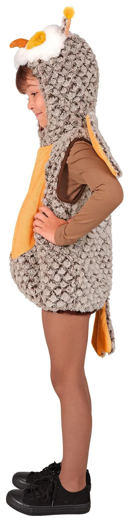 Stai cercando un costume da gufo per tuo figlio? Con il costume da gufo con ali per bambino nei colori marrone, grigio e bianco avrai il vestito perfetto per travestire tuo figlio come questo uccello notturno della foresta e sarà il bambino più bello della festa di carnevale.