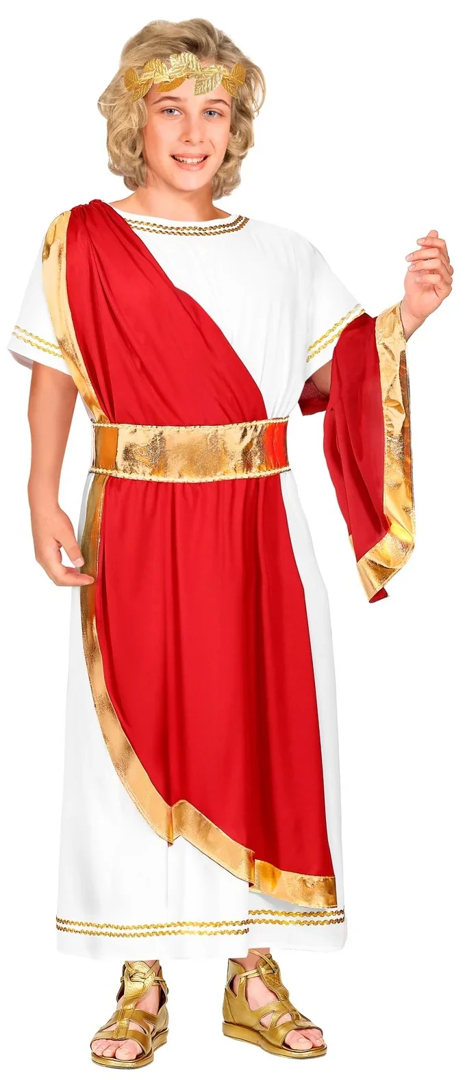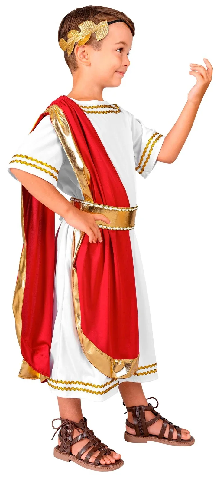Stai cercando un costume da romano per tuo figlio? Con il costume da imperatore romano per bambini con toga rossa avrai il vestito perfetto per travestire tuo figlio come questi potenti governanti dell’Impero Romano come Giulio Cesare o Augusto e sarà il bambino più bello della festa in maschera.