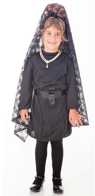 Vuoi trasformare la più piccola di casa nella protagonista della Settimana Santa? Questo costume da Manola con mantilla di colore nero la farà immergere completamente nelle sensazioni della processione della Settimana Santa.