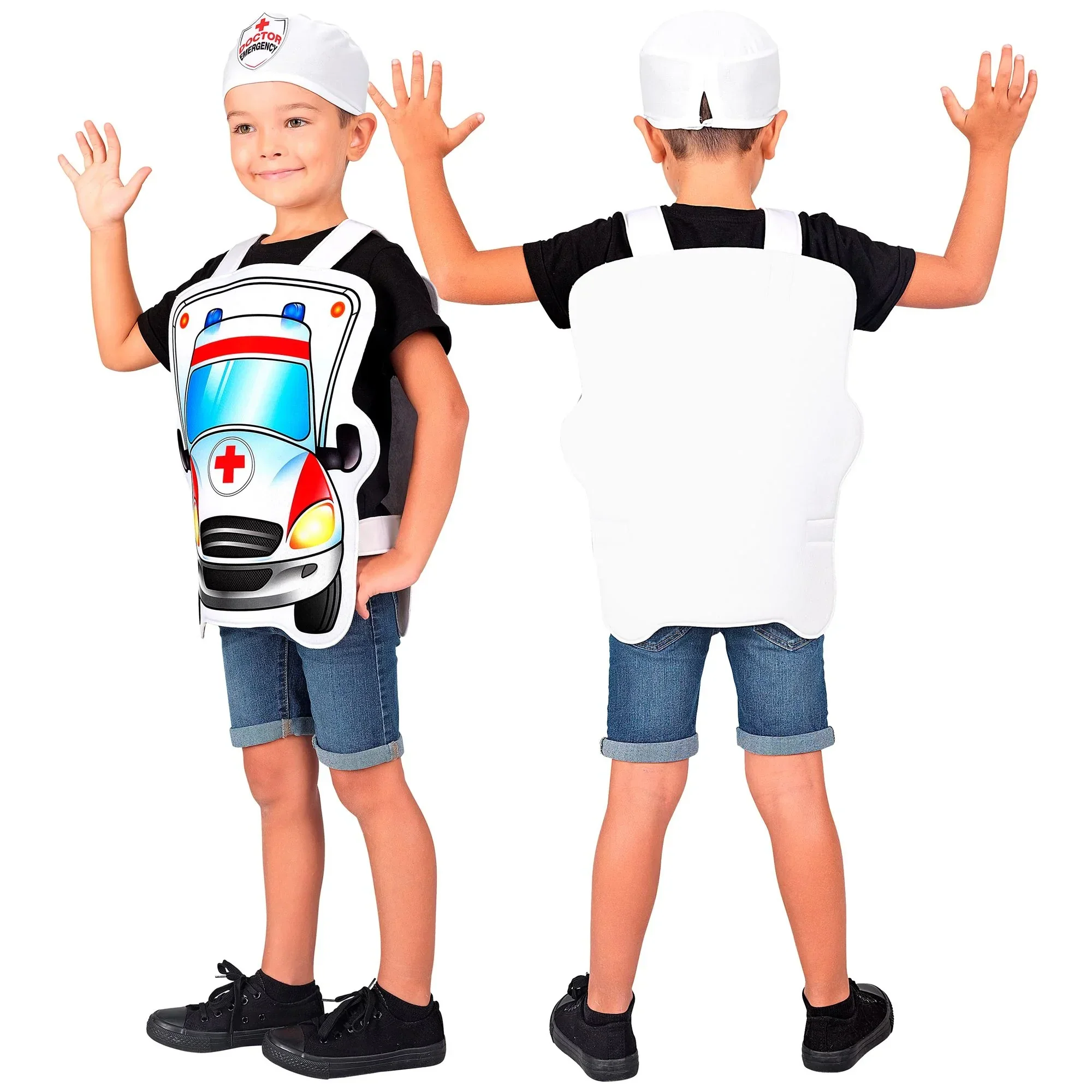 Stai cercando un costume originale da dottore per tuo figlio? Con il costume da medico di emergenza con ambulanza per bambino o bambina avrai il vestito perfetto per travestire i tuoi figli come questi professionisti della sanità nel loro veicolo medicalizzato e i tuoi figli avranno il costume più originale della festa in maschera.