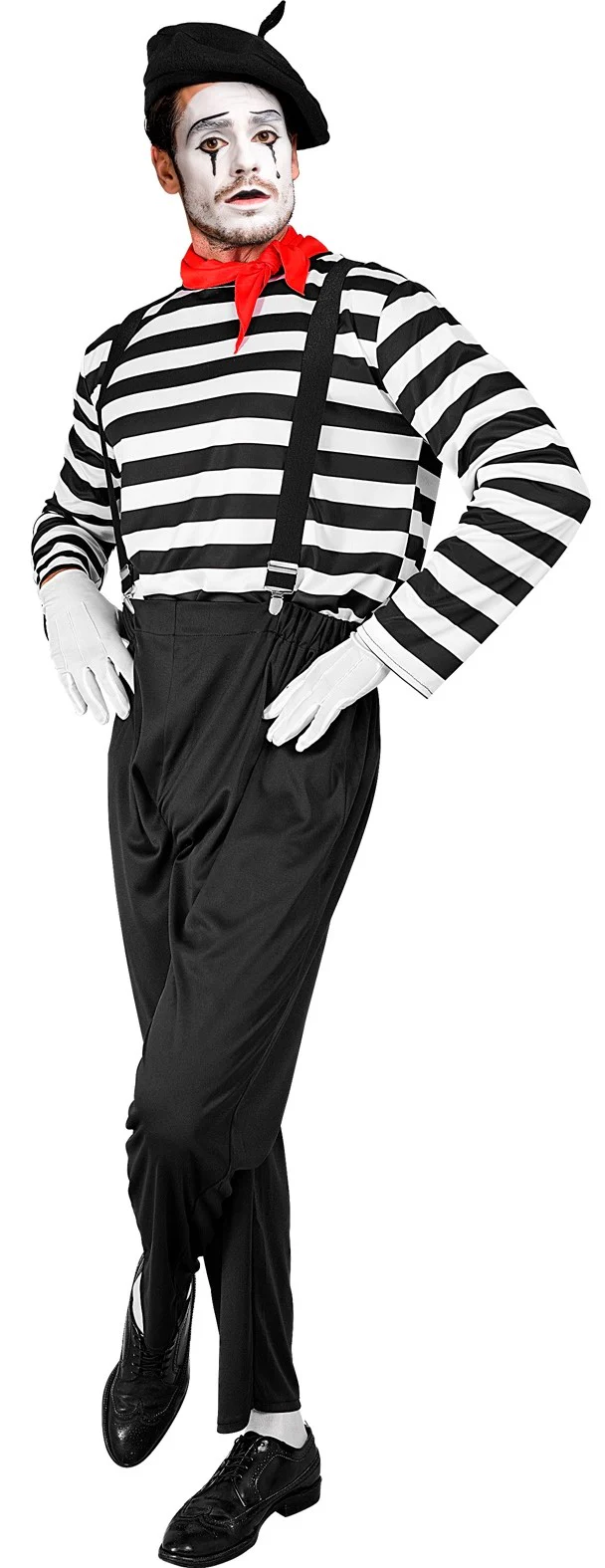 Stai cercando un costume da mimo per la tua festa? Con il costume da mimo classico per adulto avrai il vestito perfetto per travestirti come questi simpatici artisti della mimica e trionferai alla tua festa in maschera.