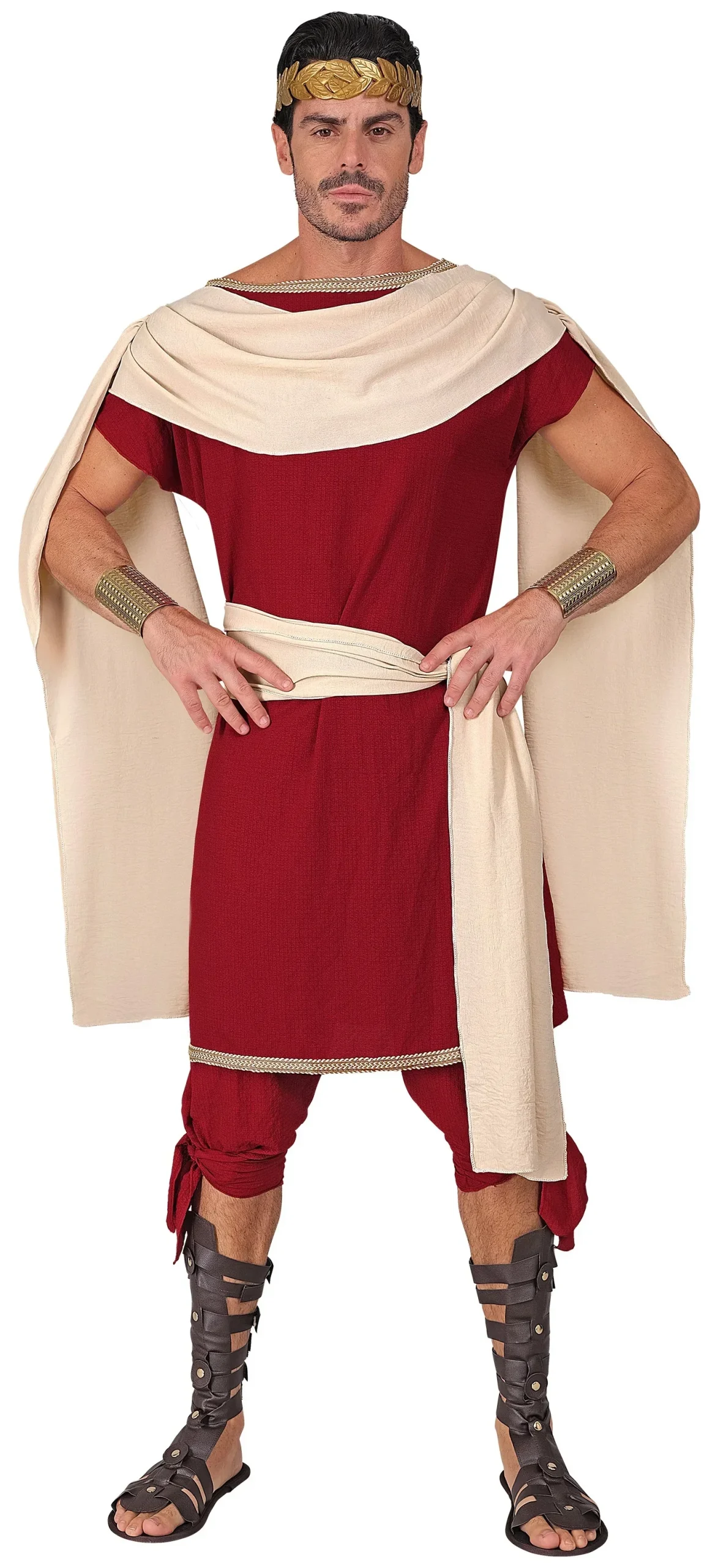 Stai cercando un costume da romano per la tua festa? Con il costume da principe romano per adulto con tunica granata e sciarpa e cintura beige avrai il vestito perfetto per travestirti come l’elegante figlio di un imperatore dell’antico Impero Romano e trionferai alla tua festa in maschera.